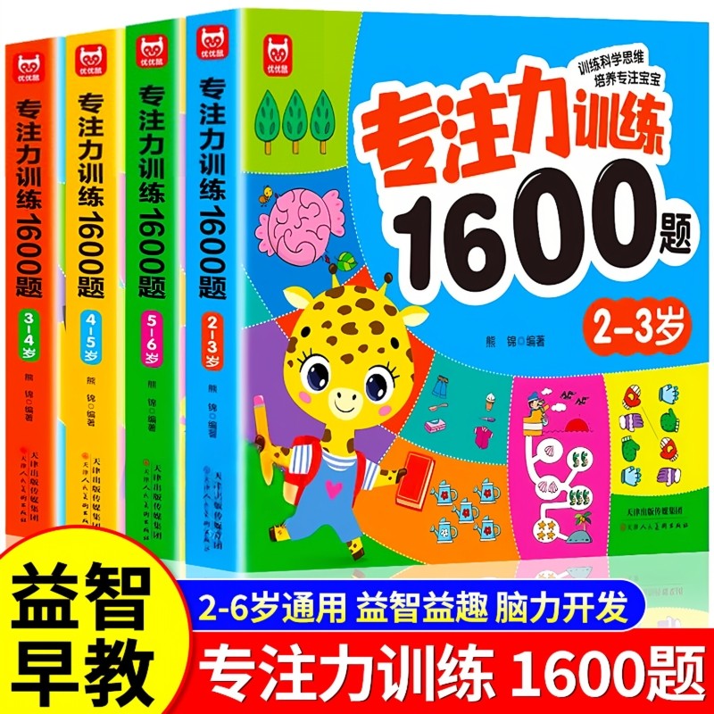 专注力训练1600题2-3-4-5-6岁幼儿园宝宝早教启蒙思维训练逻辑迷宫专注力找不同练习书儿童益智奥数启蒙全脑开发绘本游戏书