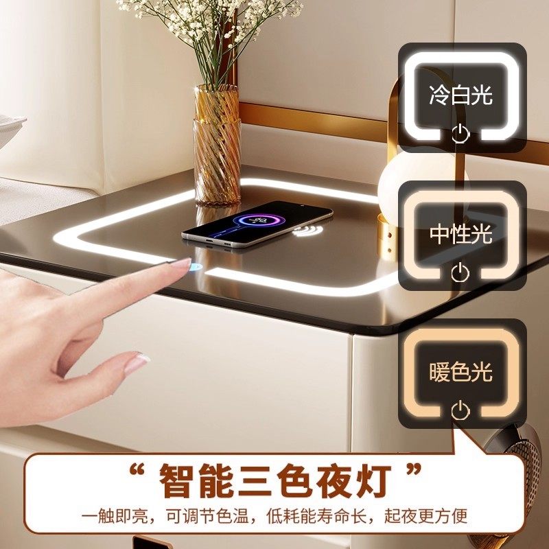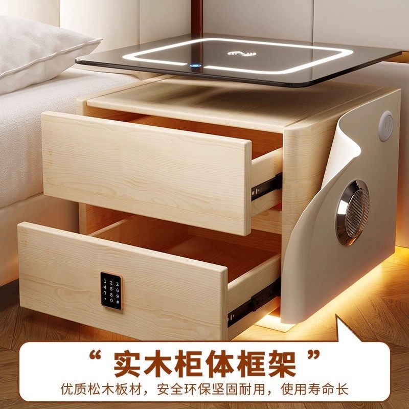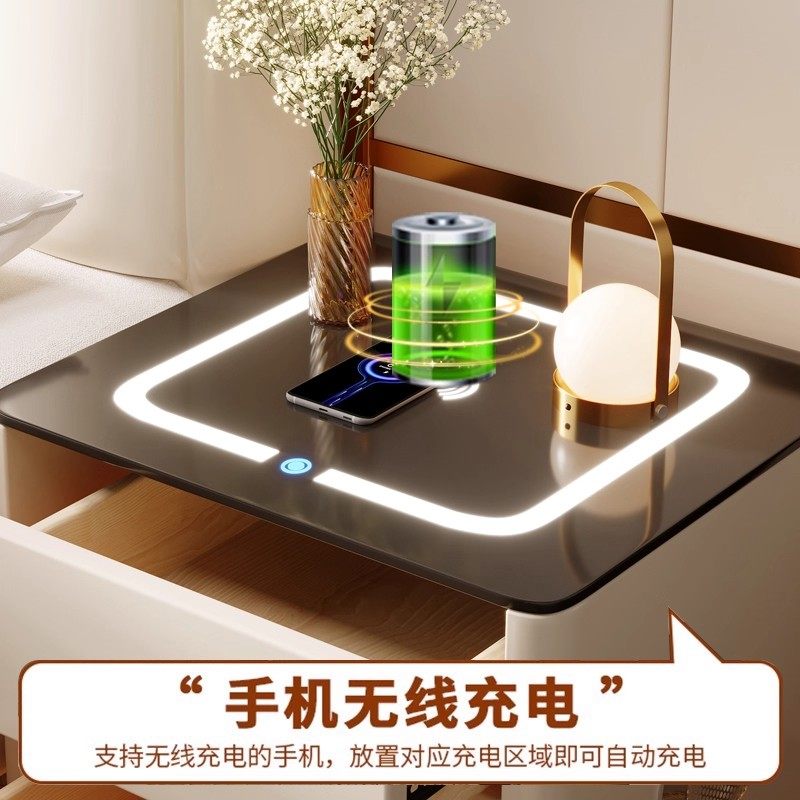智能床头柜家用卧室2025新款轻奢高级感主卧无线充电实木爆款柜子
