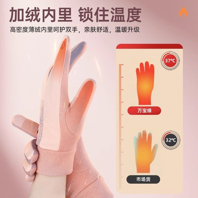保暖手套女秋冬触屏加厚户外骑行开车德绒防风运动手套防冻男女款