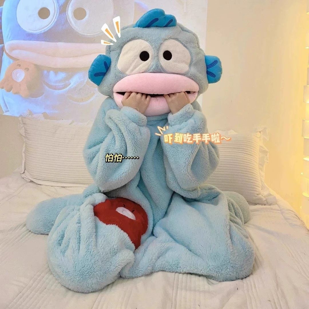 小丑鱼连体睡衣女珊瑚绒加厚保暖睡袋冬季大嘴鱼搞怪睡袍男外出