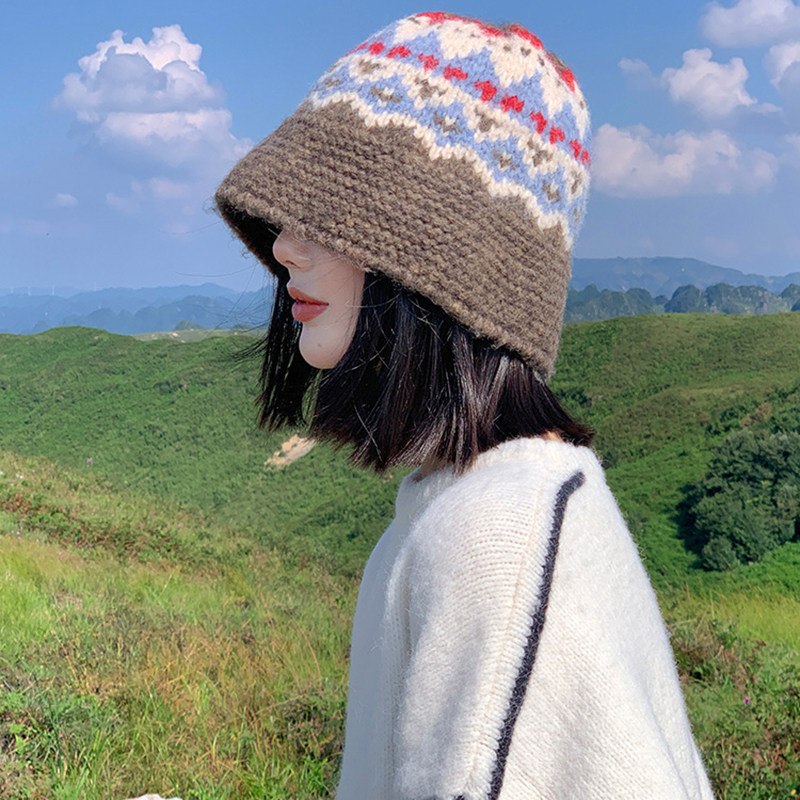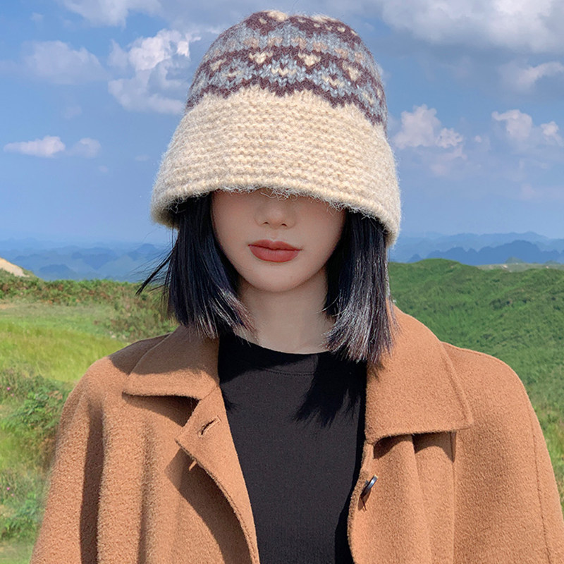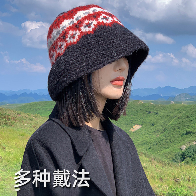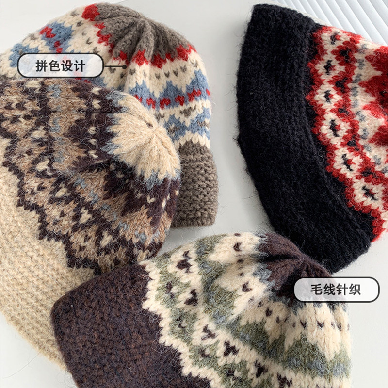 氛围感新年混纺渔夫帽子女秋冬复古保暖护耳针织毛线帽韩版文艺