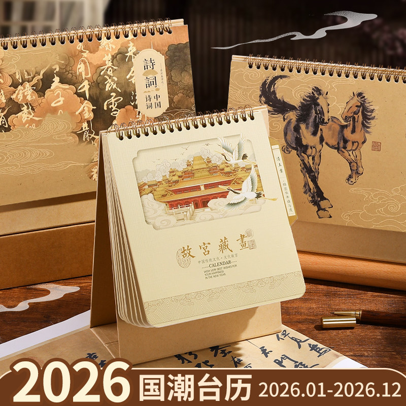 木雷2026年台历新款ins中国风桌面个性创意小摆件新年diy广告定制原创设计月历记事本计划本古典文艺竖款日历