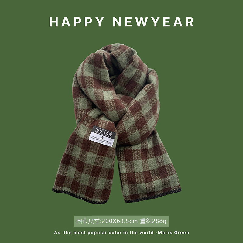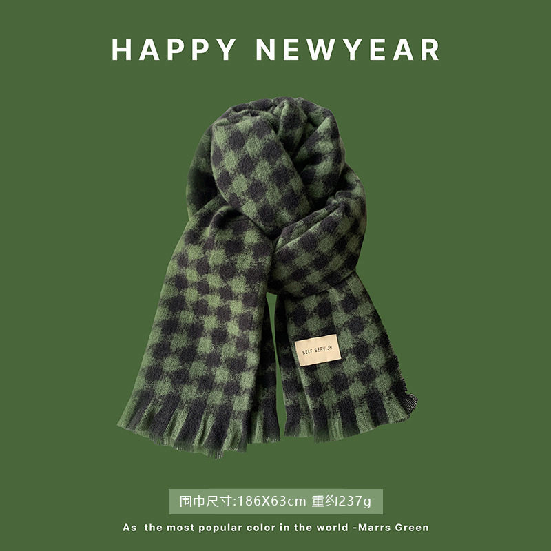 氛围感薄荷绿咖色格纹围巾女冬季百搭圣诞披肩马海毛保暖学生围脖