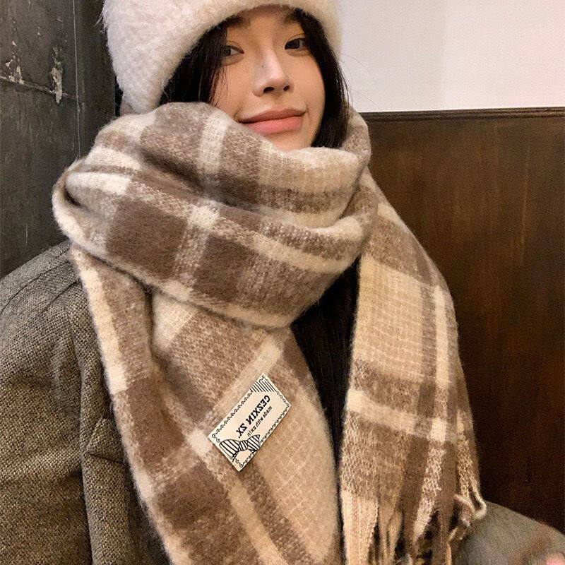 三福格子围巾韩系高级感保暖围脖披肩两用旅游外搭女冬季2025新款
