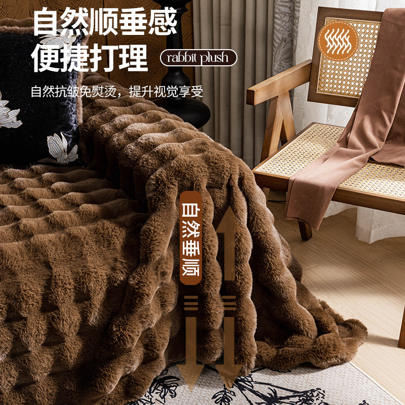 兔毛绒沙发盖布巾2025新款沙发垫冬轻奢高级感沙发套罩坐垫毯子