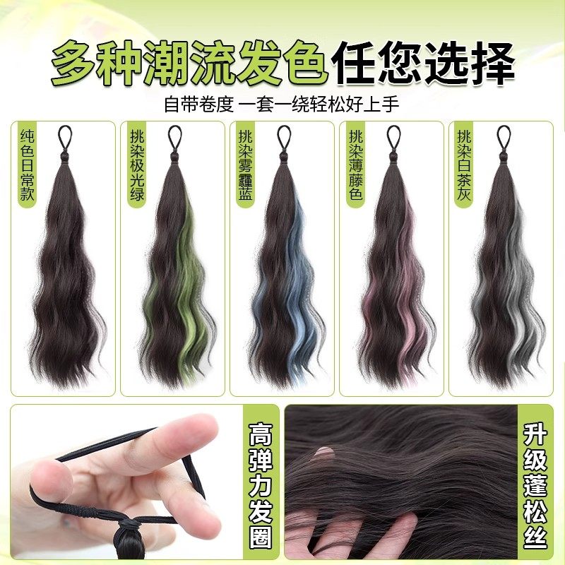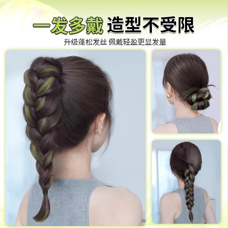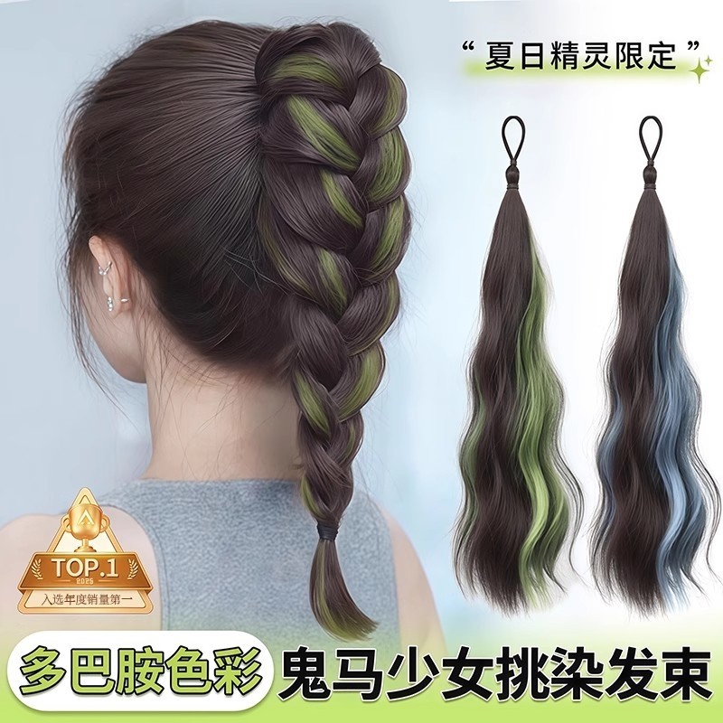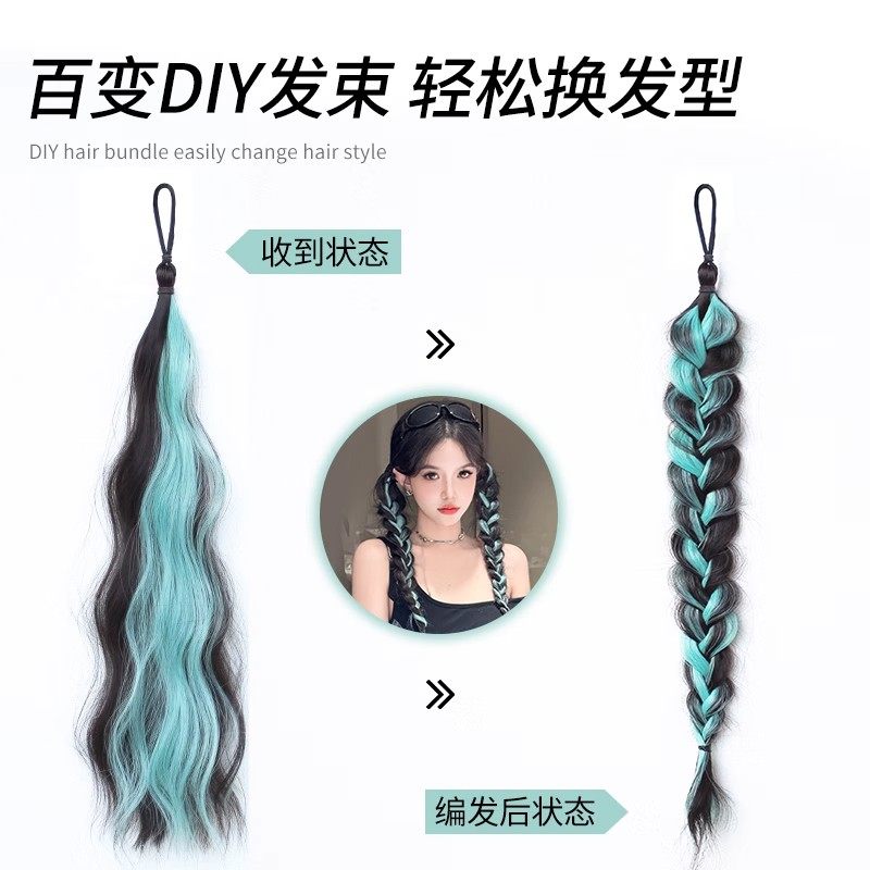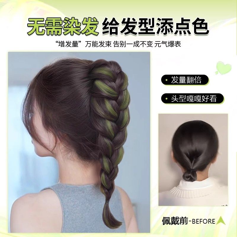薄荷青甜酷挑染发束双马尾女彩色麻花长辫编发神器多巴胺假发辫子