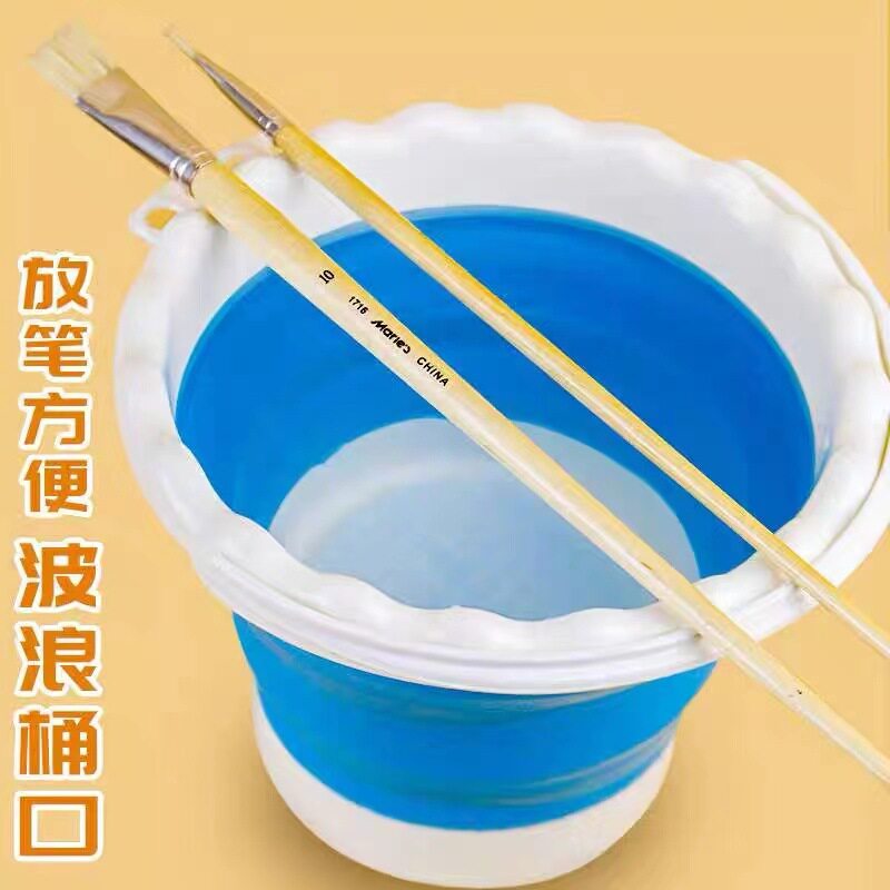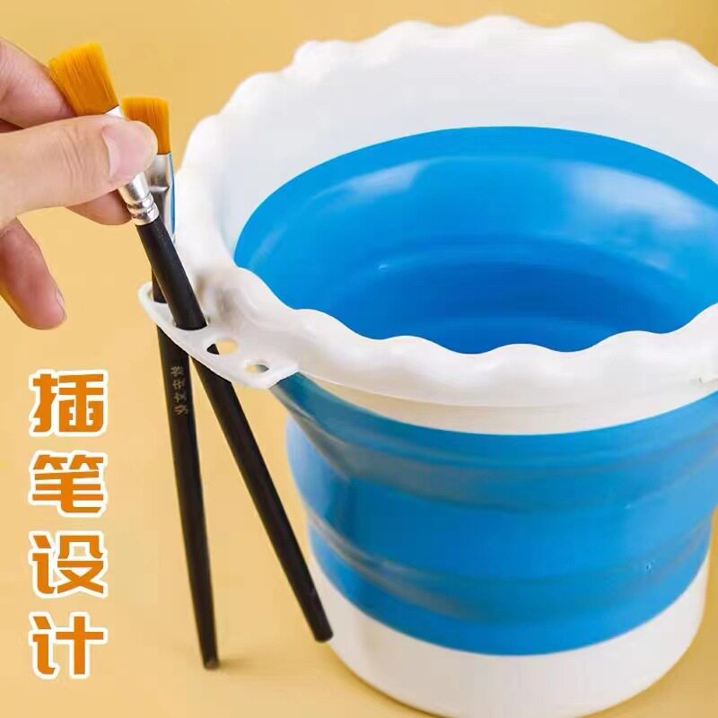 可折叠水桶伸缩颜料加厚手提美术生洗笔硅胶水桶可插笔写生塑料筒