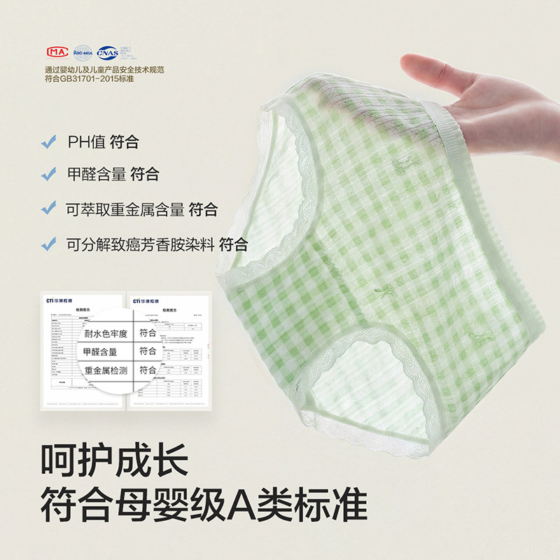 [7A抗菌]英氏儿童女童内裤纯棉女宝宝男童四角打底裤中大童不夹PP