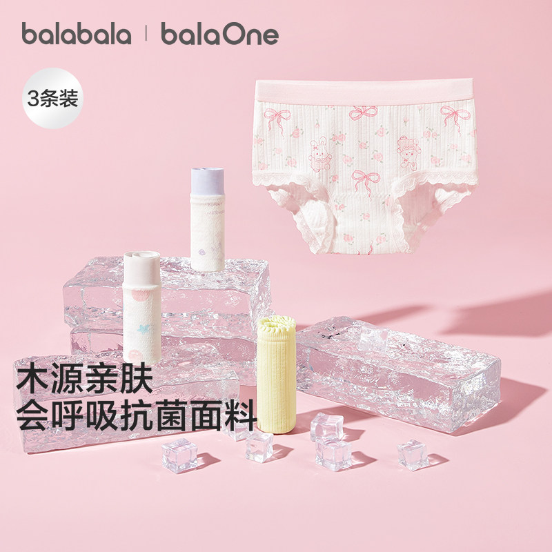 巴拉巴拉女童内裤棉儿童三角短裤宝宝不夹P抗菌薄舒适亲肤三条装