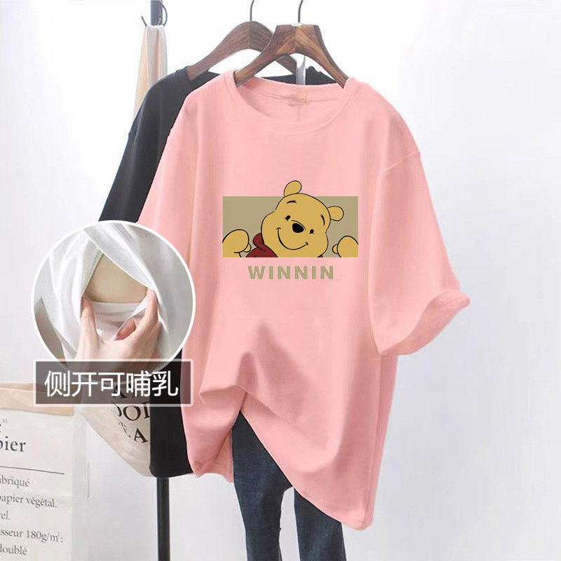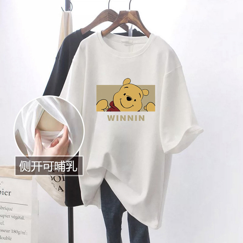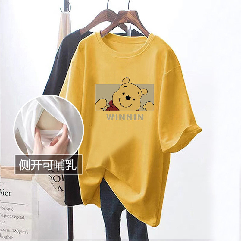 婧麒夏季外出打底衫辣妈款哺乳衣怀孕期孕妇时尚喂奶短袖上衣T恤