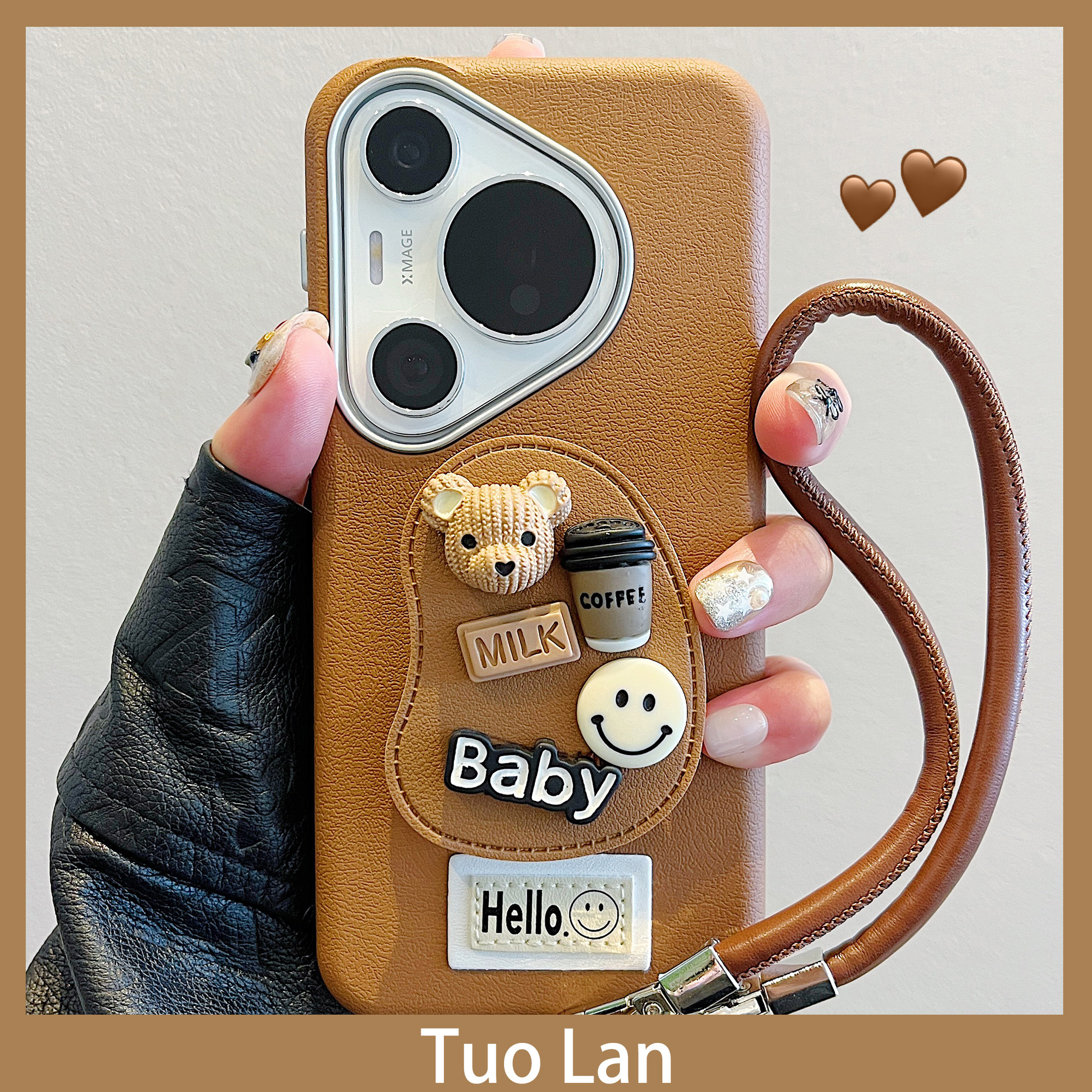 拓岚 适用华为pura70pro+新款手机壳秋冬Pura70ultra情侣p60卡通diy立体公仔皮质支架mate60/50/40挂绳全包女