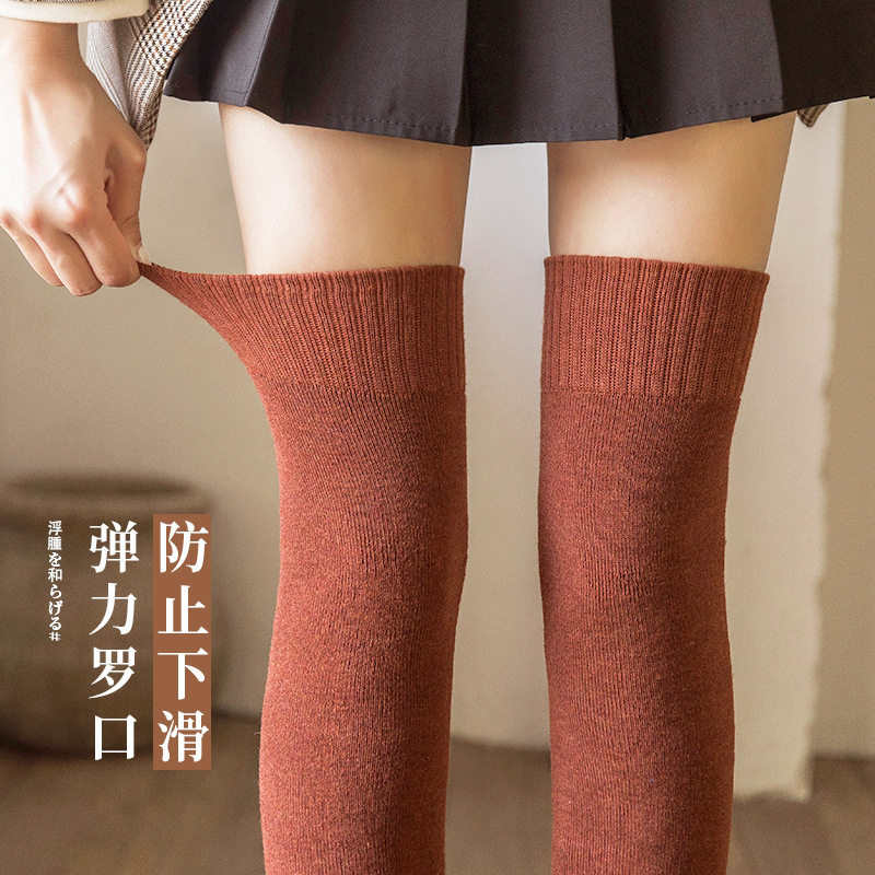 羊毛过膝袜女秋冬款羊绒长筒袜加绒加厚保暖大码孕妇坐月子大腿袜