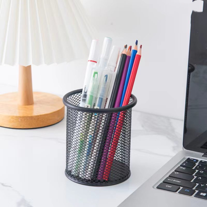 协诚笔筒方形圆形金属铁网笔座网状笔插创意时尚彩色笔架桌面收纳