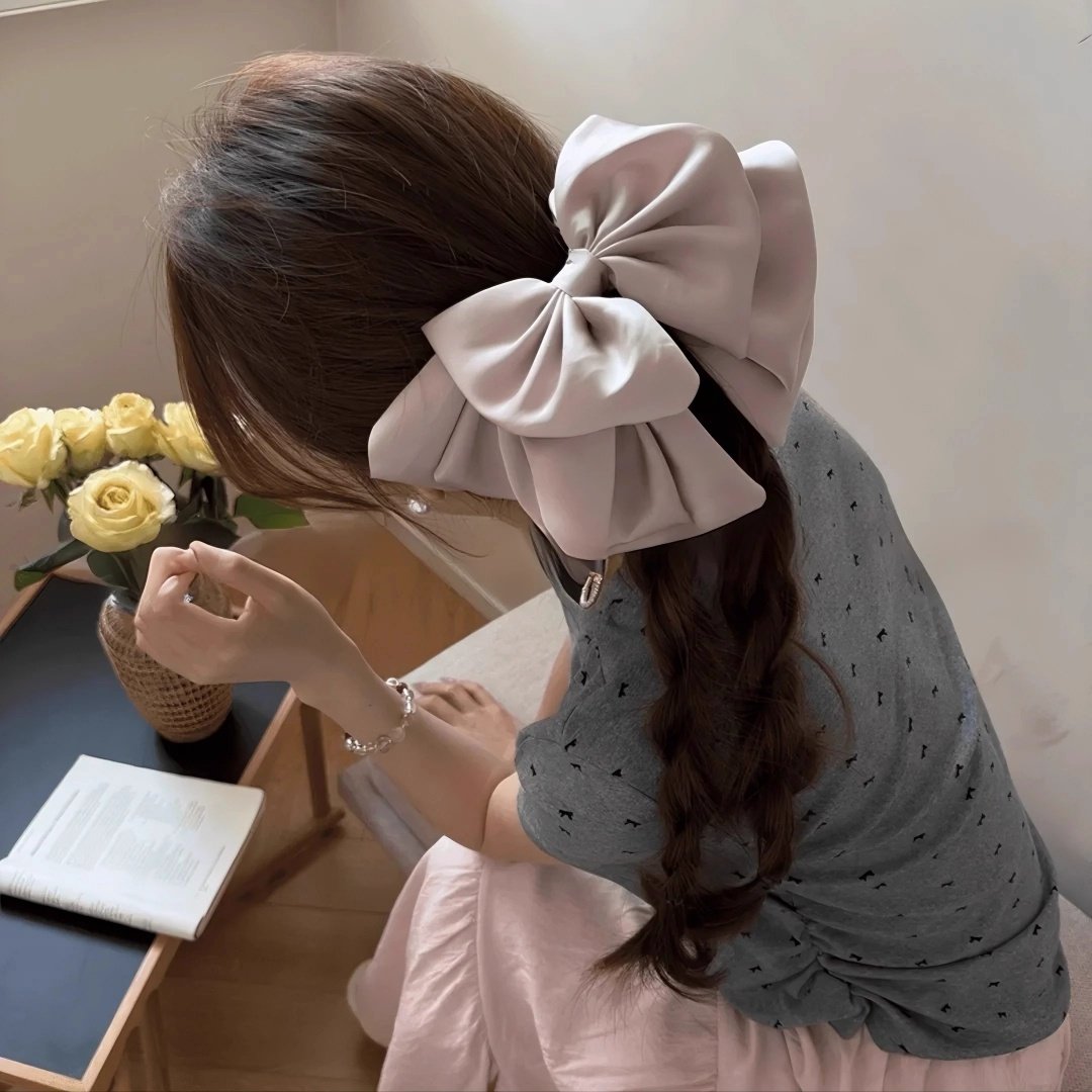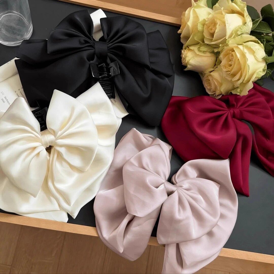 优雅感缎面蝴蝶结花苞抓夹女高级感后脑勺盘发马尾夹气质发夹发饰