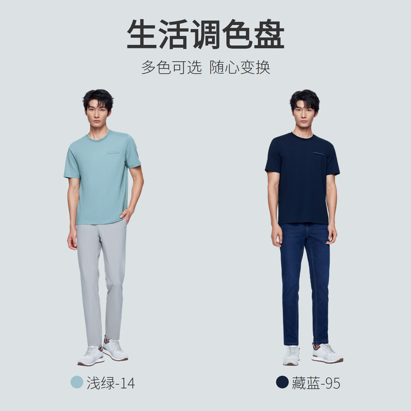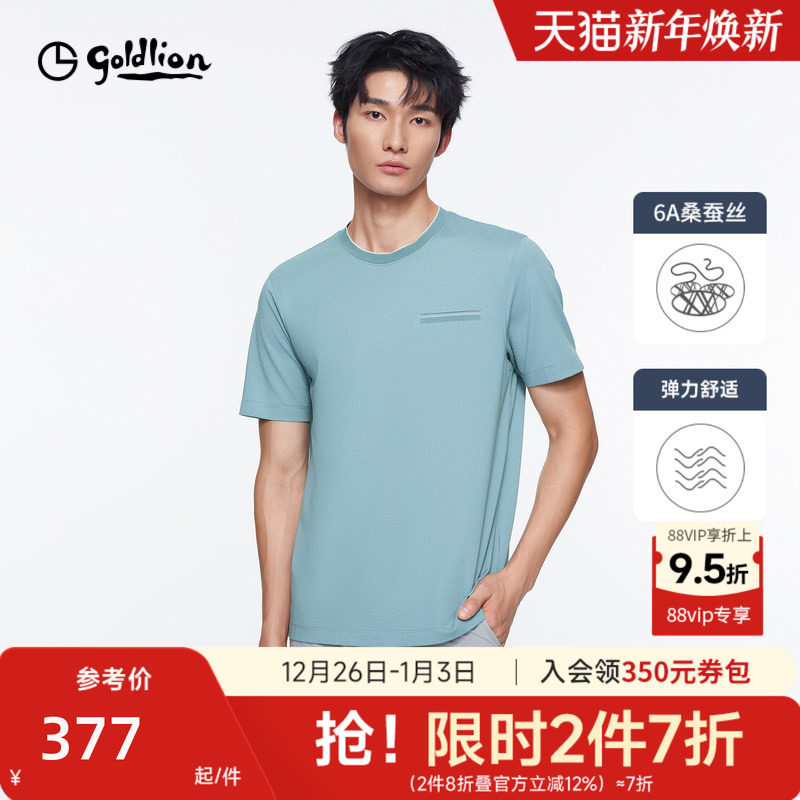 【含桑蚕丝】金利来24夏季新款男士凉感柔软弹力圆领短袖T恤上衣