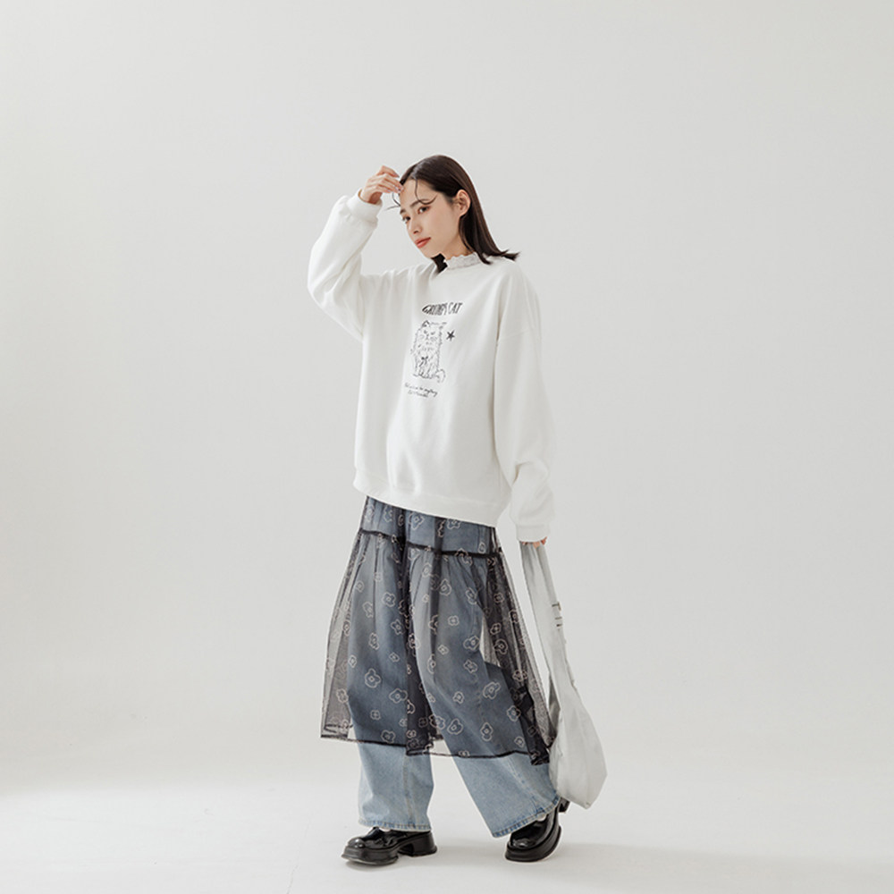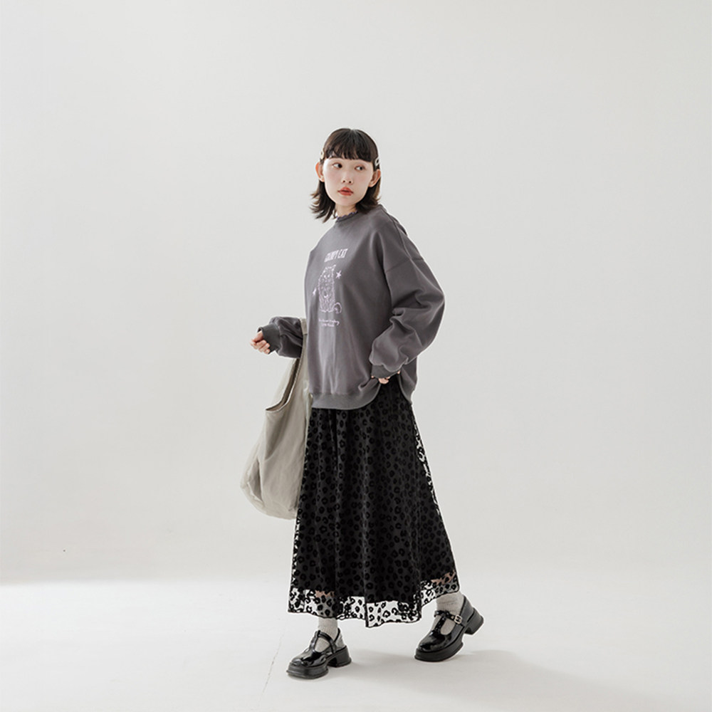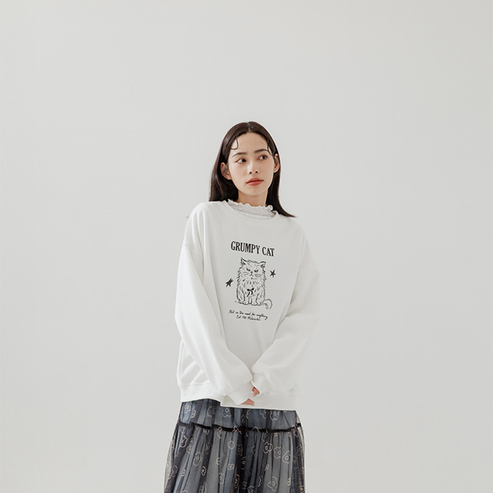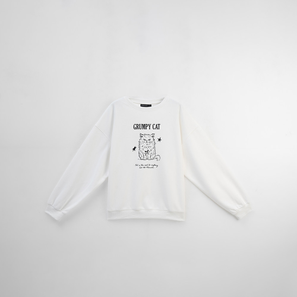 QUEENSHOP 2025秋冬新品女装线条生气猫咪印图长袖卫衣01111009