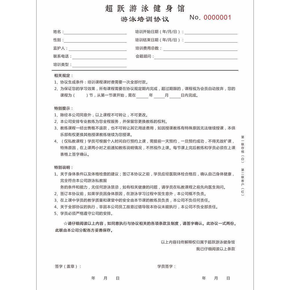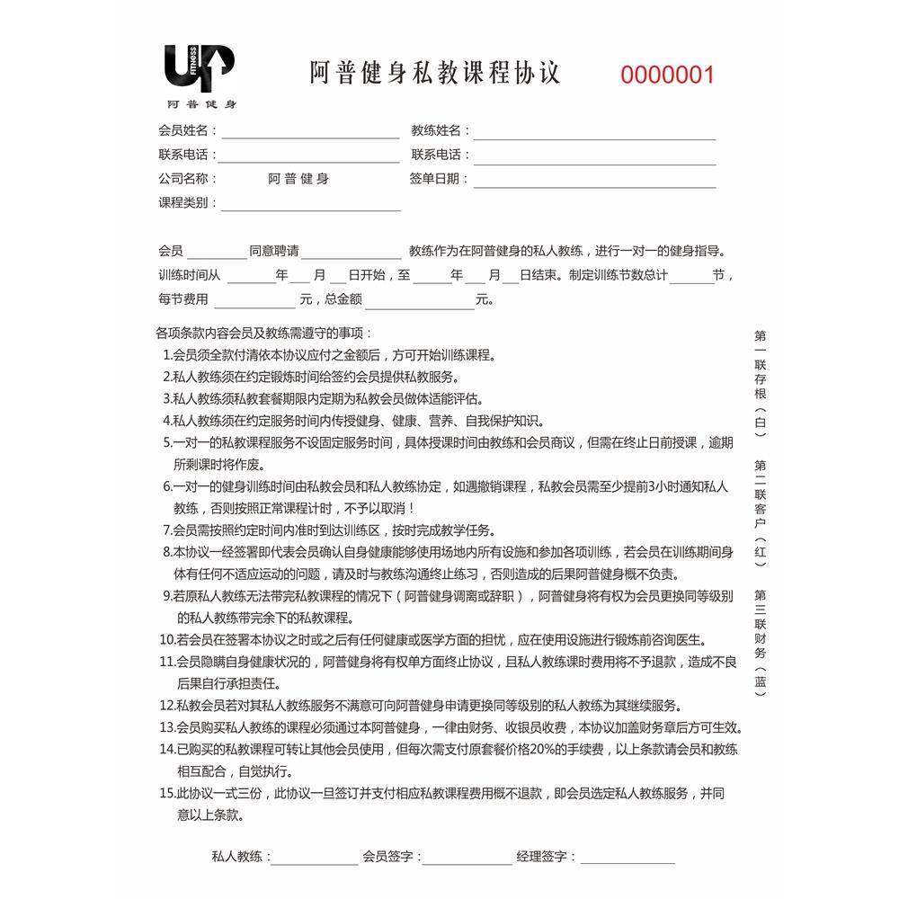 定做健身入会协议私教协议瑜伽会员合同减肥舞蹈培训协议课程收据