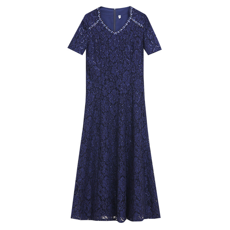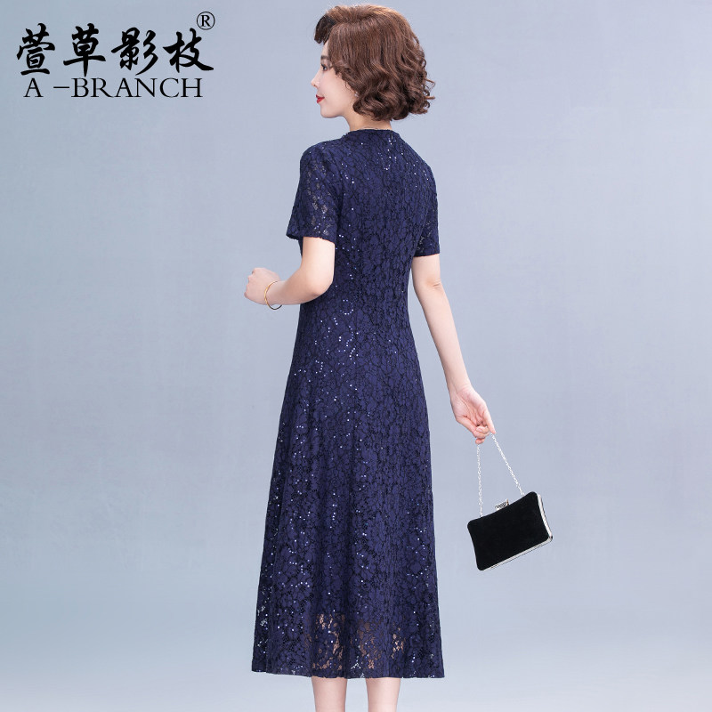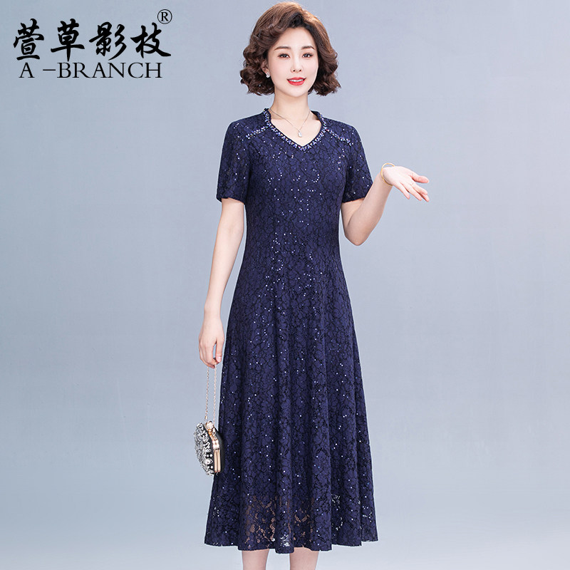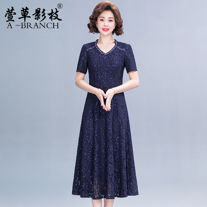 品牌妈妈夏装连衣裙女短袖2025新款洋气修身蕾丝裙优雅显瘦长裙子