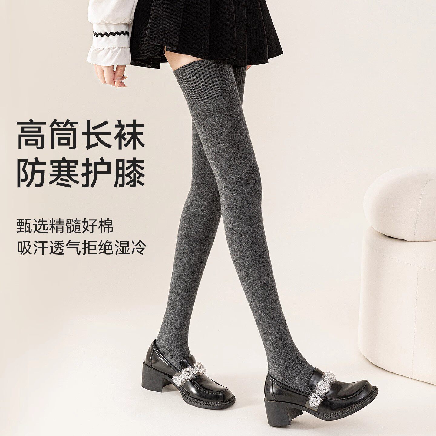 过膝袜子女秋冬款压力显瘦高筒长袜纯棉加厚保暖护膝大腿袜配长靴