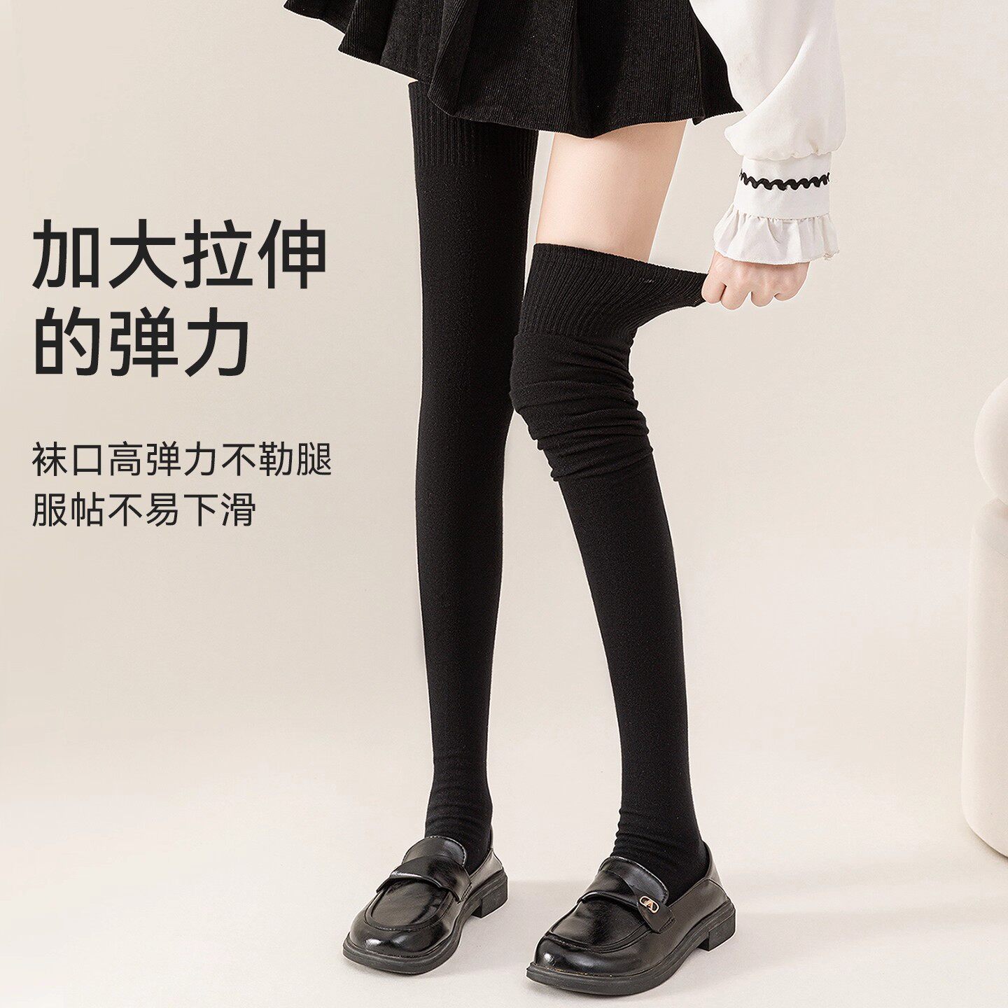 过膝袜子女高筒袜秋冬季加绒加厚保暖大腿纯色冬天半截长筒袜膝盖