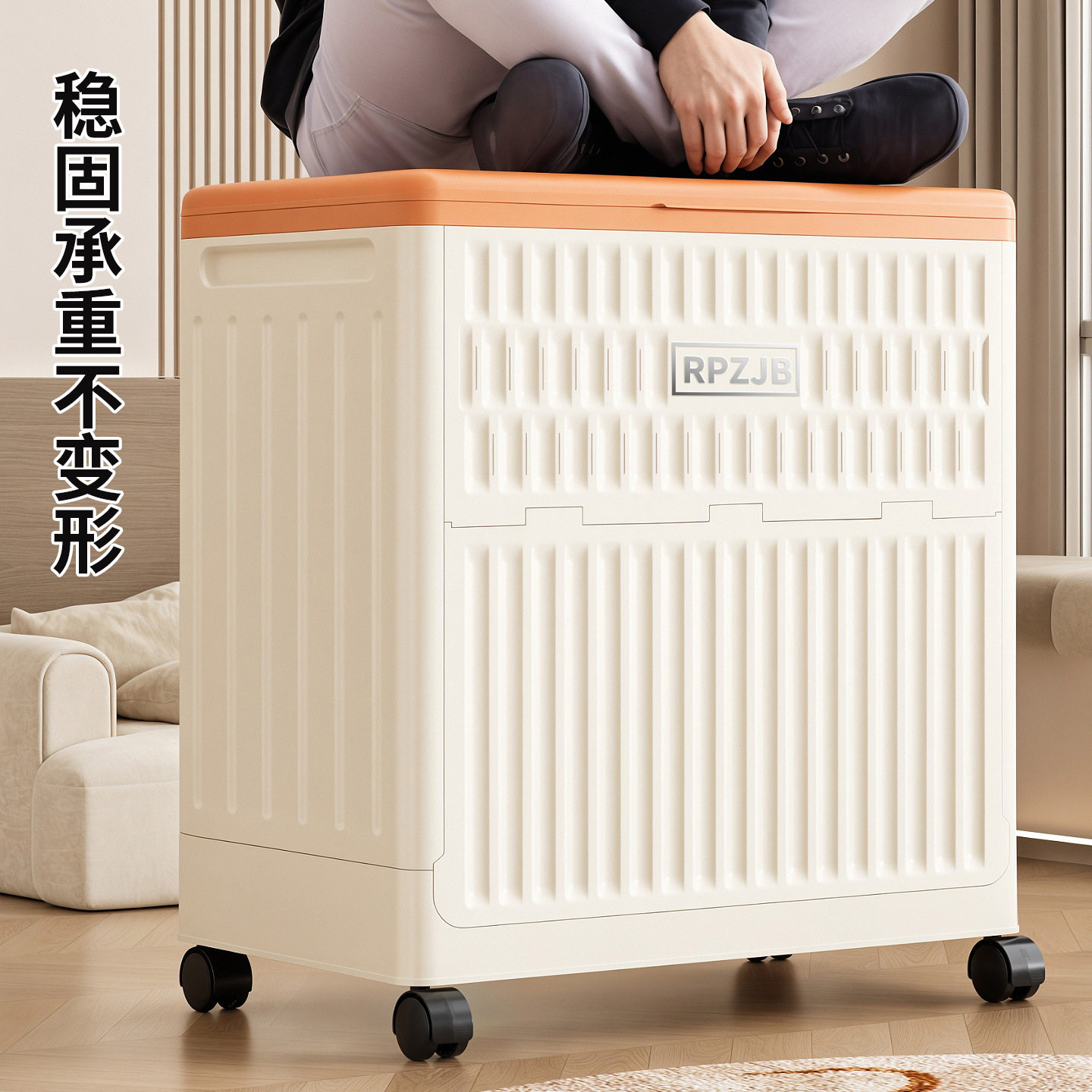 翻盖多功能收纳箱家用超大容量带滑轮整理箱可折叠衣物塑料储物箱