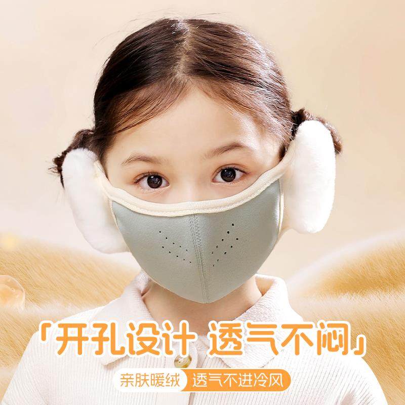 保暖儿童护耳口罩纯色透气立体男女孩学生护耳套加厚防寒毛绒耳罩
