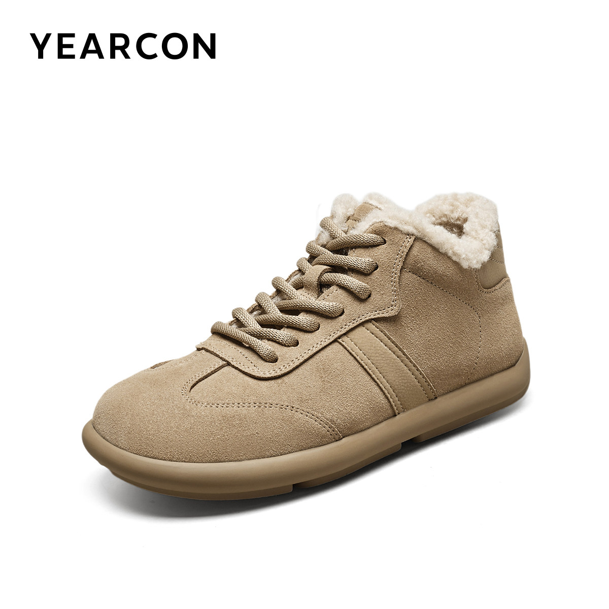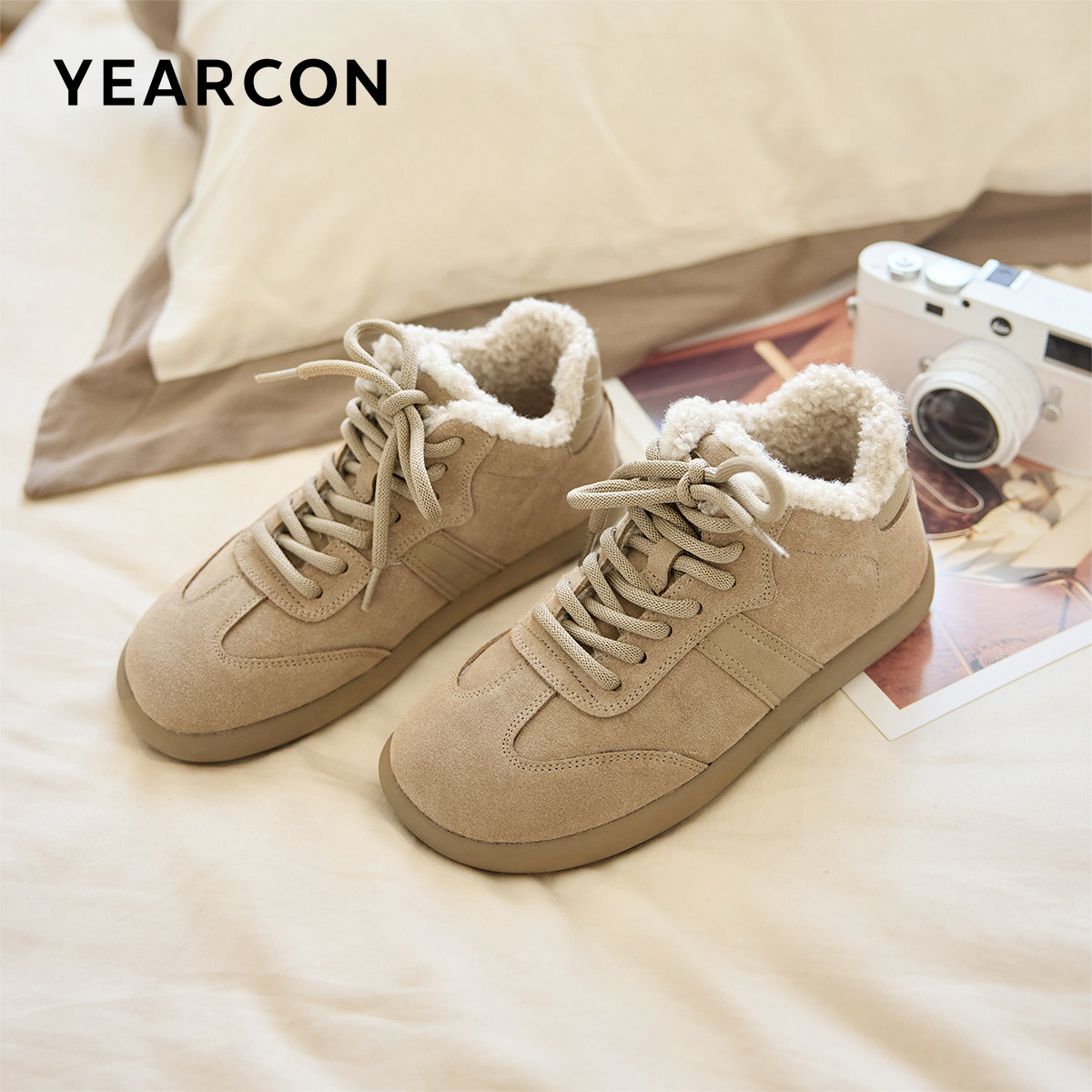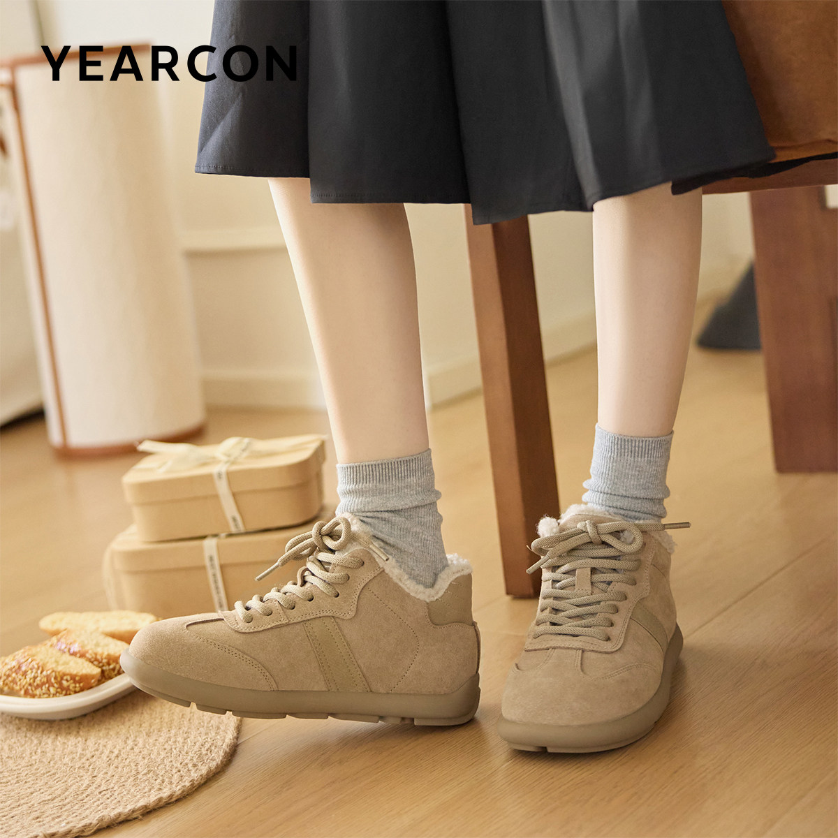 意尔康女鞋2025冬季棉鞋加绒保暖高帮德训鞋平底休闲毛毛鞋复古