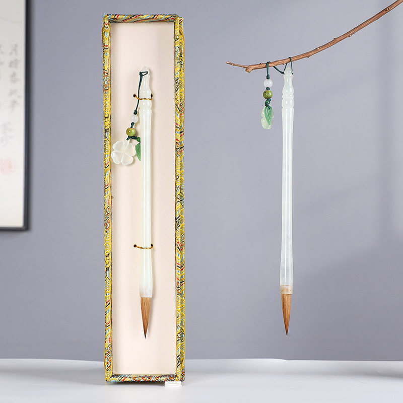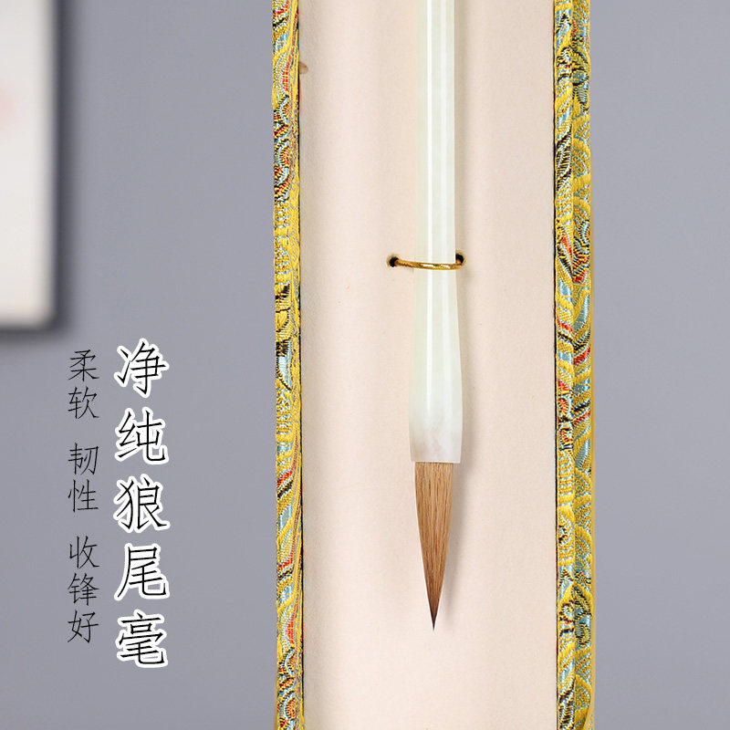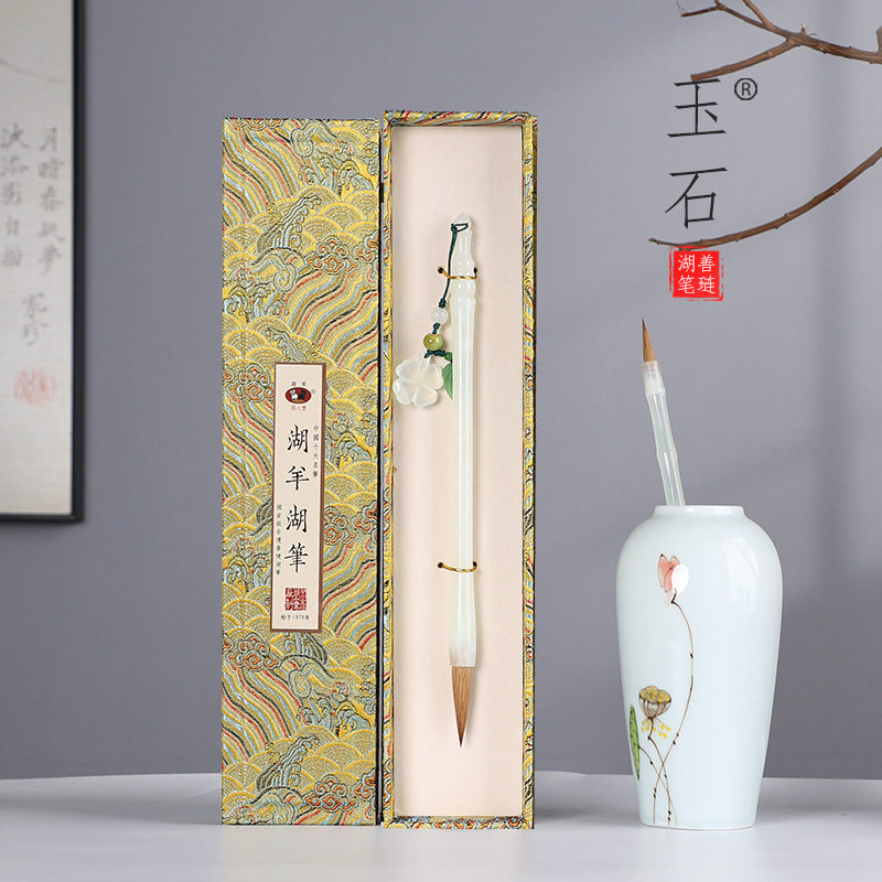 湖羊冰料玉石毛笔书法专用高档专业级中楷狼毫天然岫石笔杆兼毫羊毫楷书行书用笔正品善琏湖笔高档礼盒套装