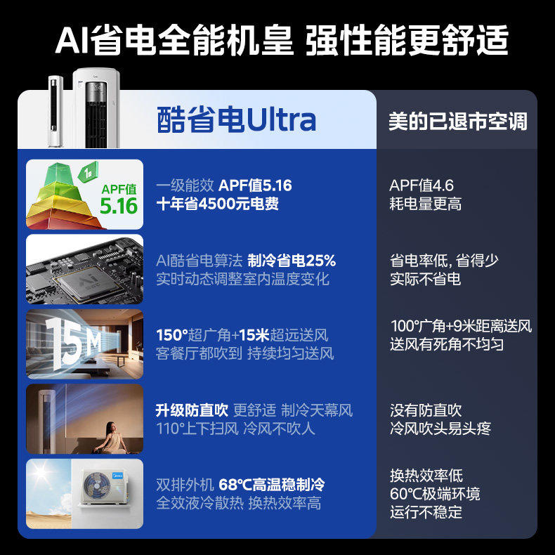 美的空调酷省电Ultra新一级省电节能3匹立式柜机家用客厅变频冷暖