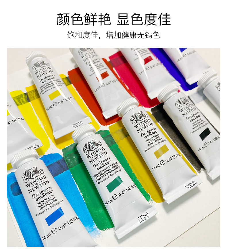 进口温莎牛顿设计师水粉颜料Gouache不透明水彩珠宝手绘插画14ml