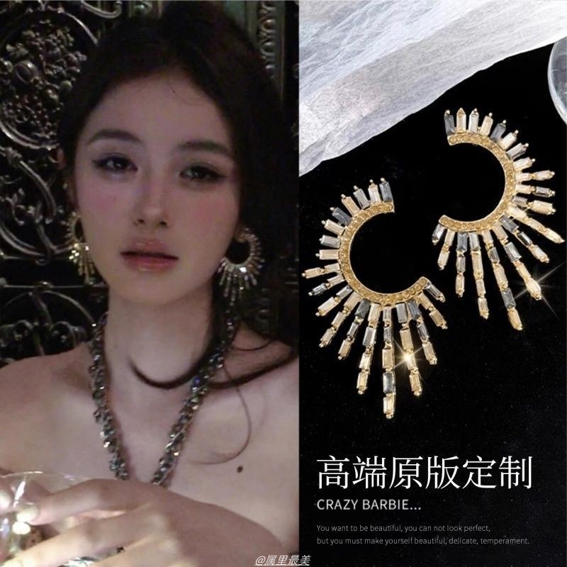 亚裔风!镶钻太阳花耳环女复古气质水钻耳饰波西米亚民族风耳钉女
