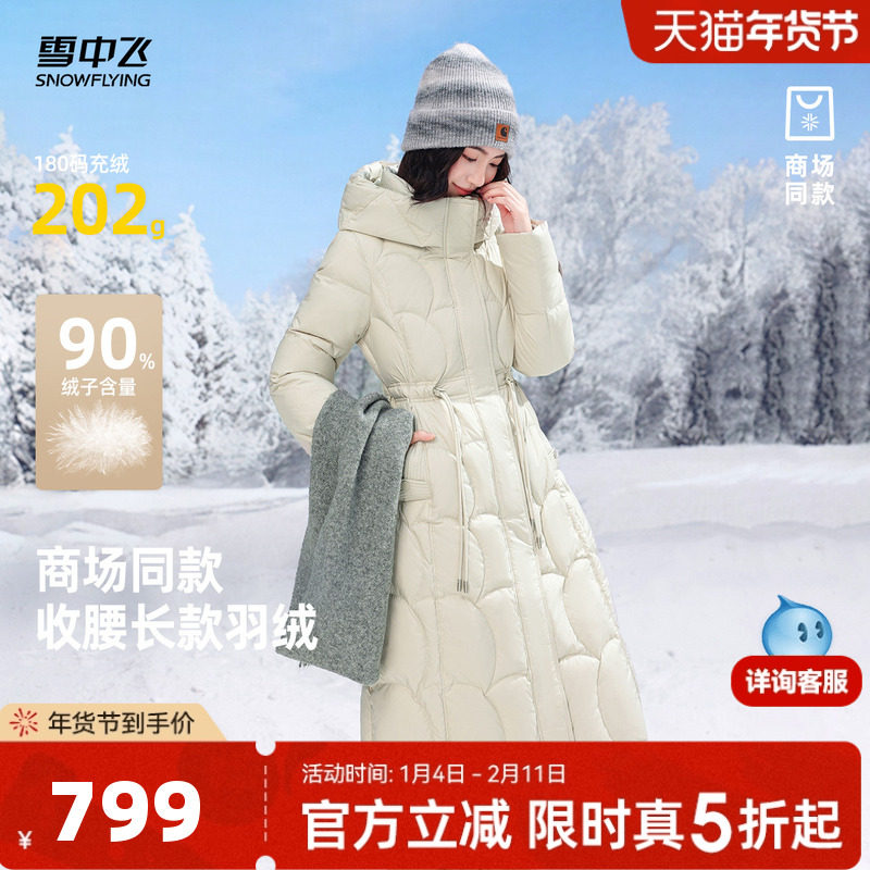 雪中飞商场同款2025冬新款长款收腰羽绒服高充绒户外抗寒时尚高级