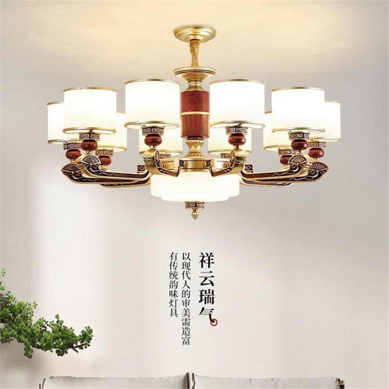 新中式吊灯简约现代客厅灯饰中国风锌合金餐厅别墅复式楼大厅灯具