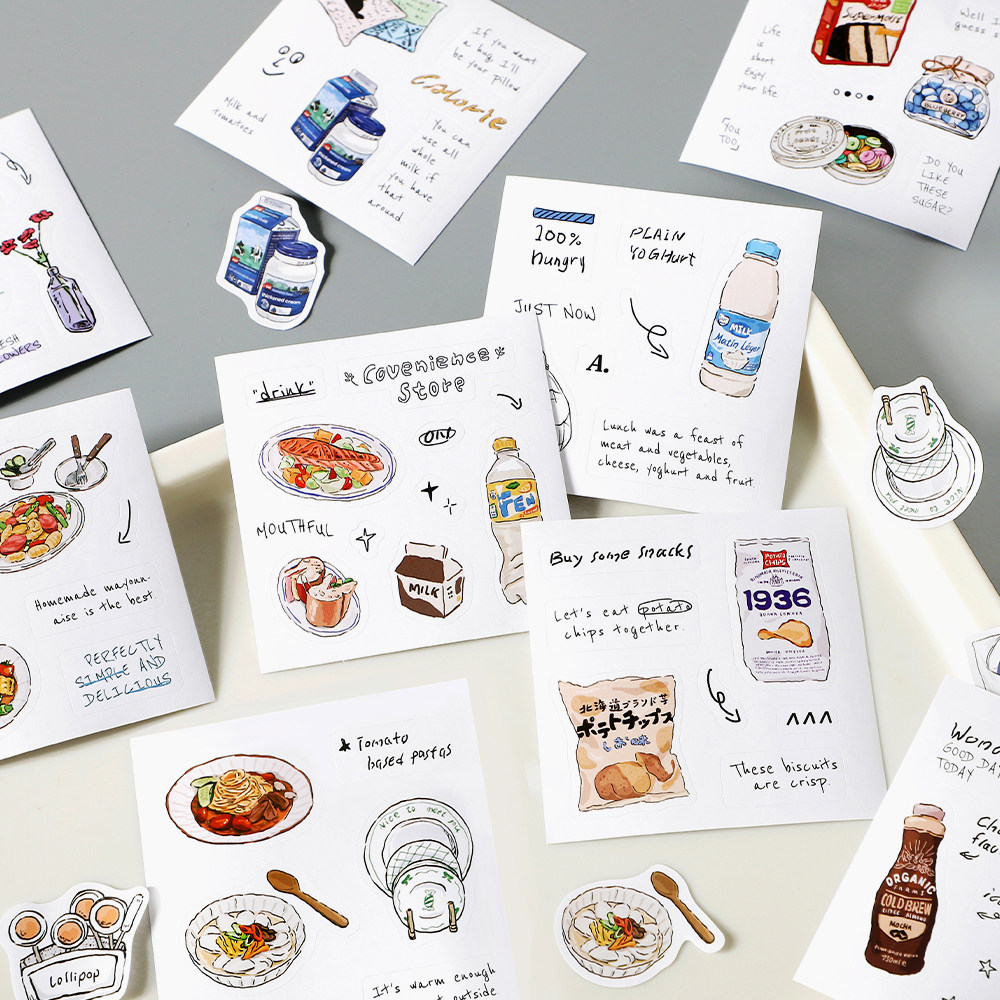 朝雨 50张咖啡日常贴纸本贴纸书ins风复古切膜手帐日记装饰贴画