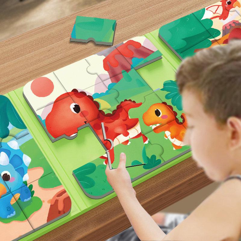 磁力方块拼图早教益智动物积木卡通六面画立体霸王龙拼图玩具塑胶