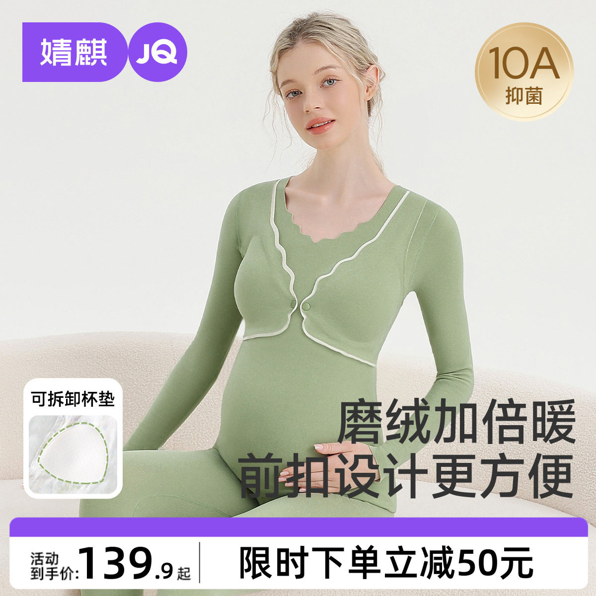 婧麒孕妇秋衣秋裤套装磨绒保暖内衣秋冬季哺乳睡衣产后打底月子服