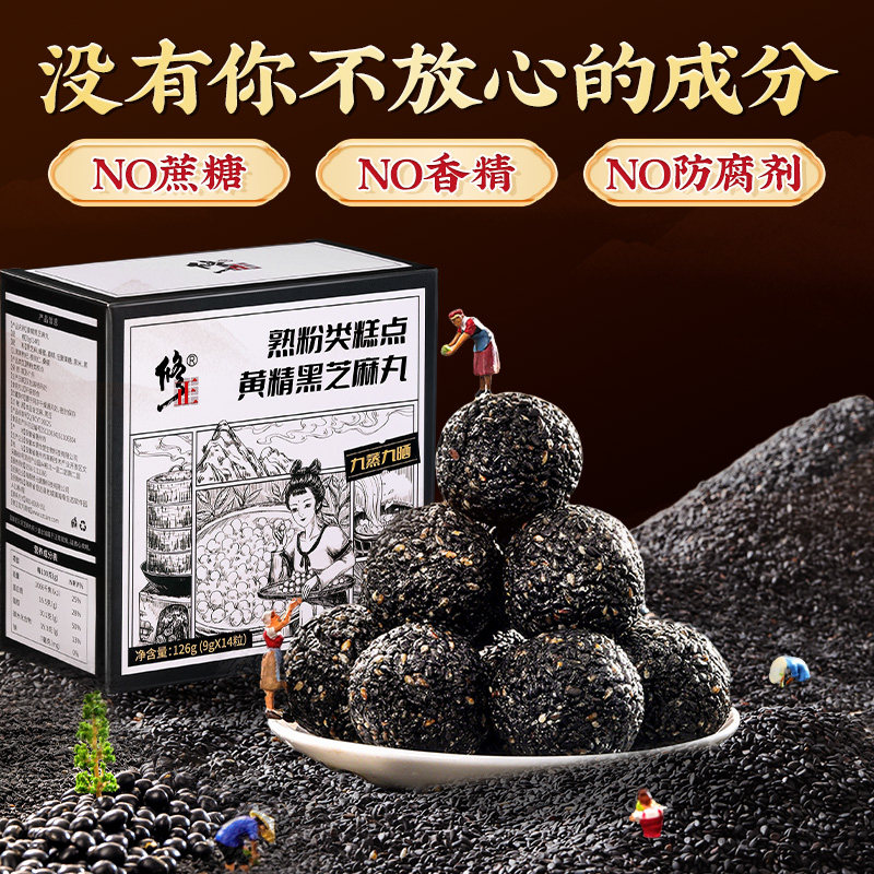 修正九蒸九晒九制黑芝麻丸黄精无糖高钙养生独立包装官方旗舰正品