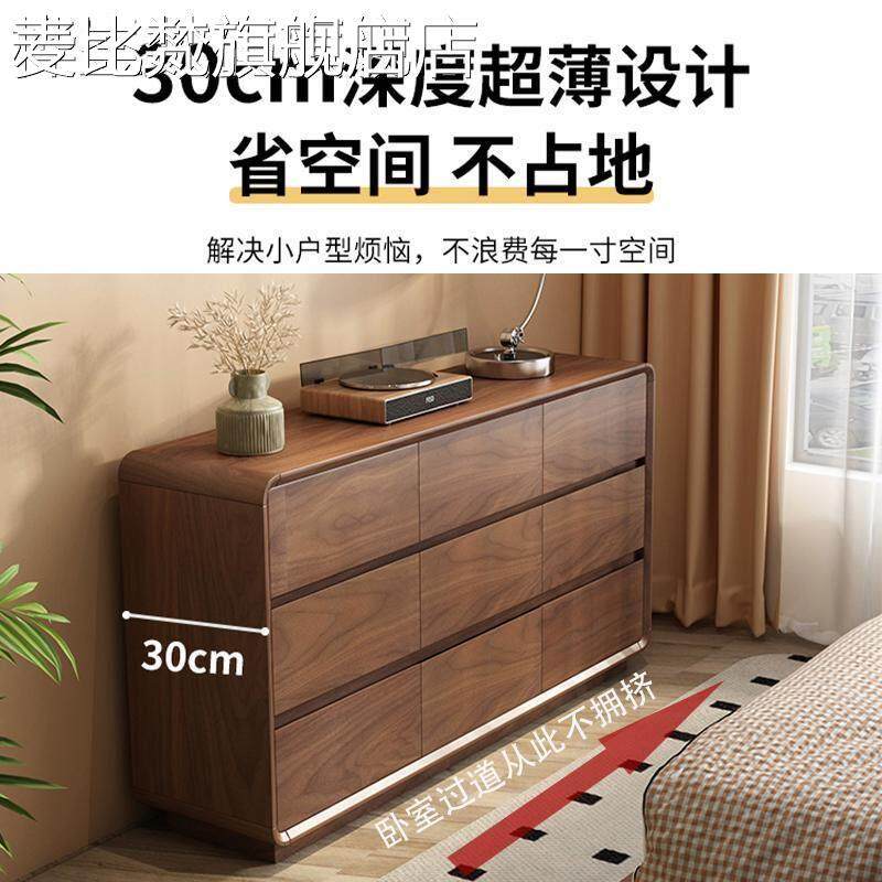 麦比梵全实木超薄五斗柜卧室靠墙床尾床头极窄抽屉胡桃色收纳储物置物柜床笠拉车