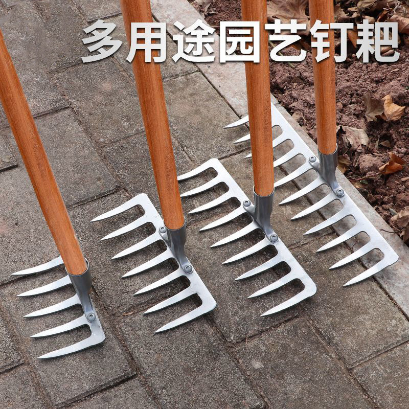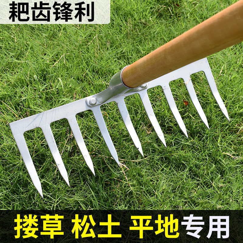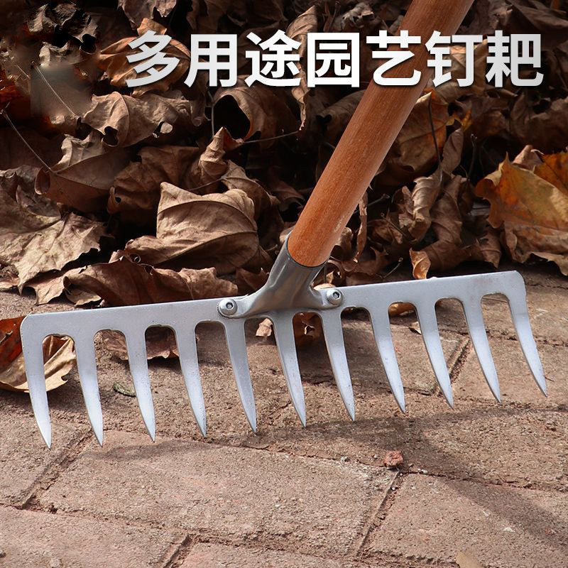 农用老式除草加厚草坪草九齿钉耙家用铁耙子钉耙搂草耙平整地农具