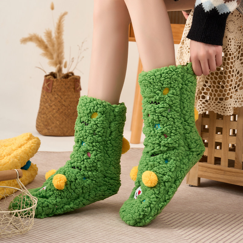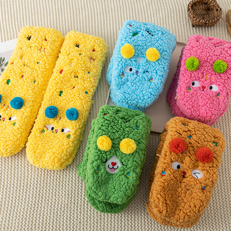 袜子女珊瑚绒袜冬季保暖加绒加厚羊羔绒居家地板袜防滑可爱神器