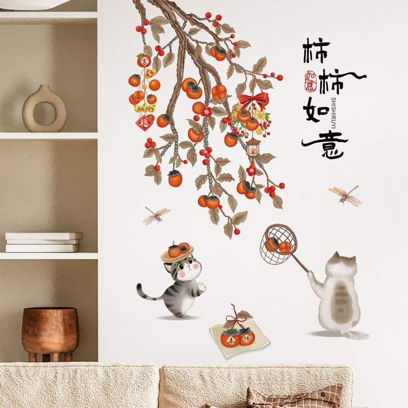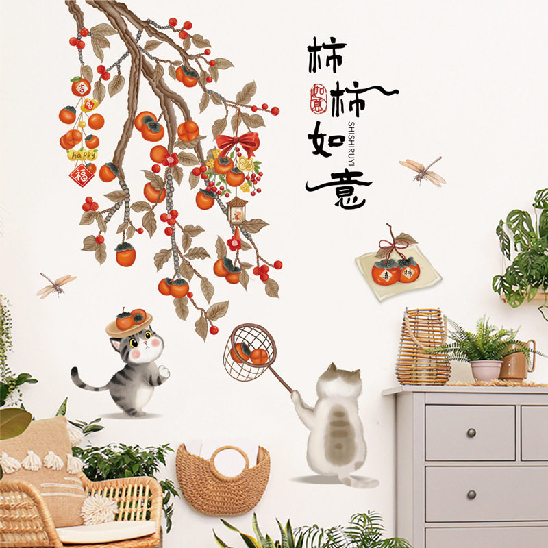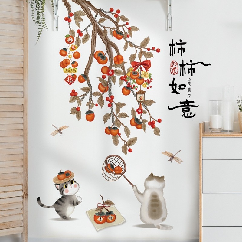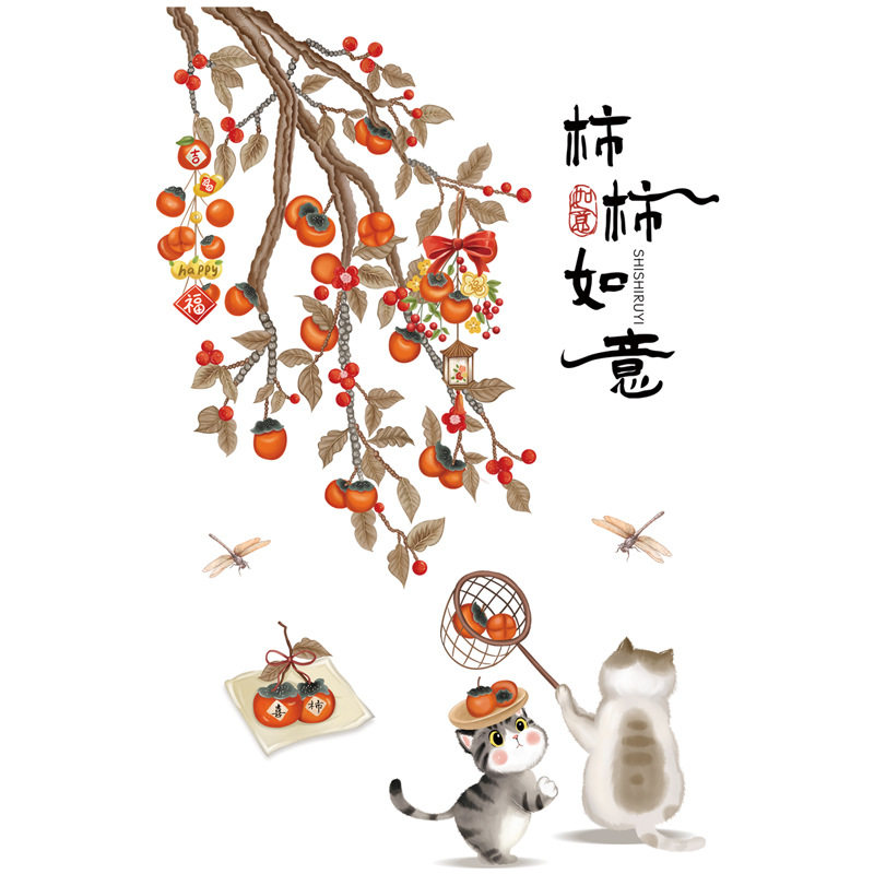 熙岸69083 中式背景墙面装饰贴画喜事常来墙贴画可移除如意墙壁画