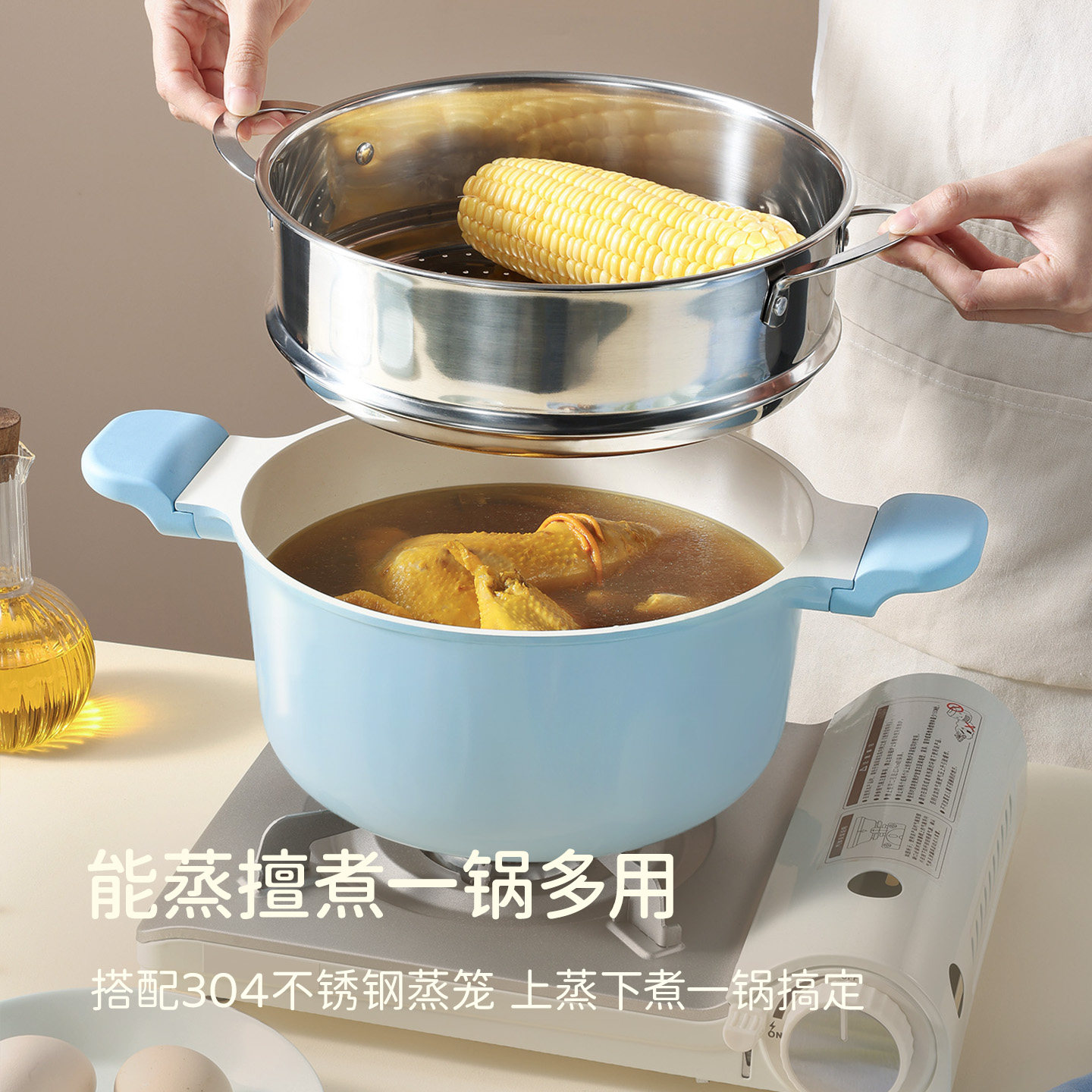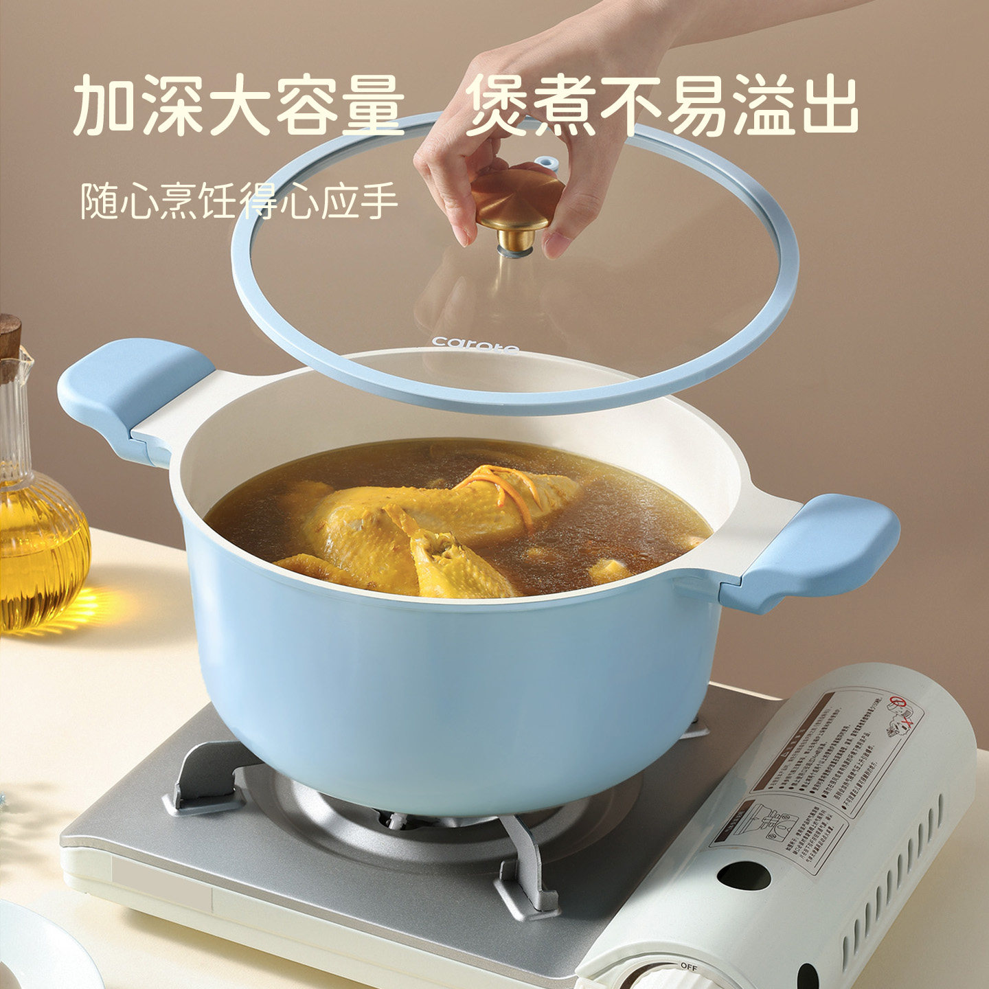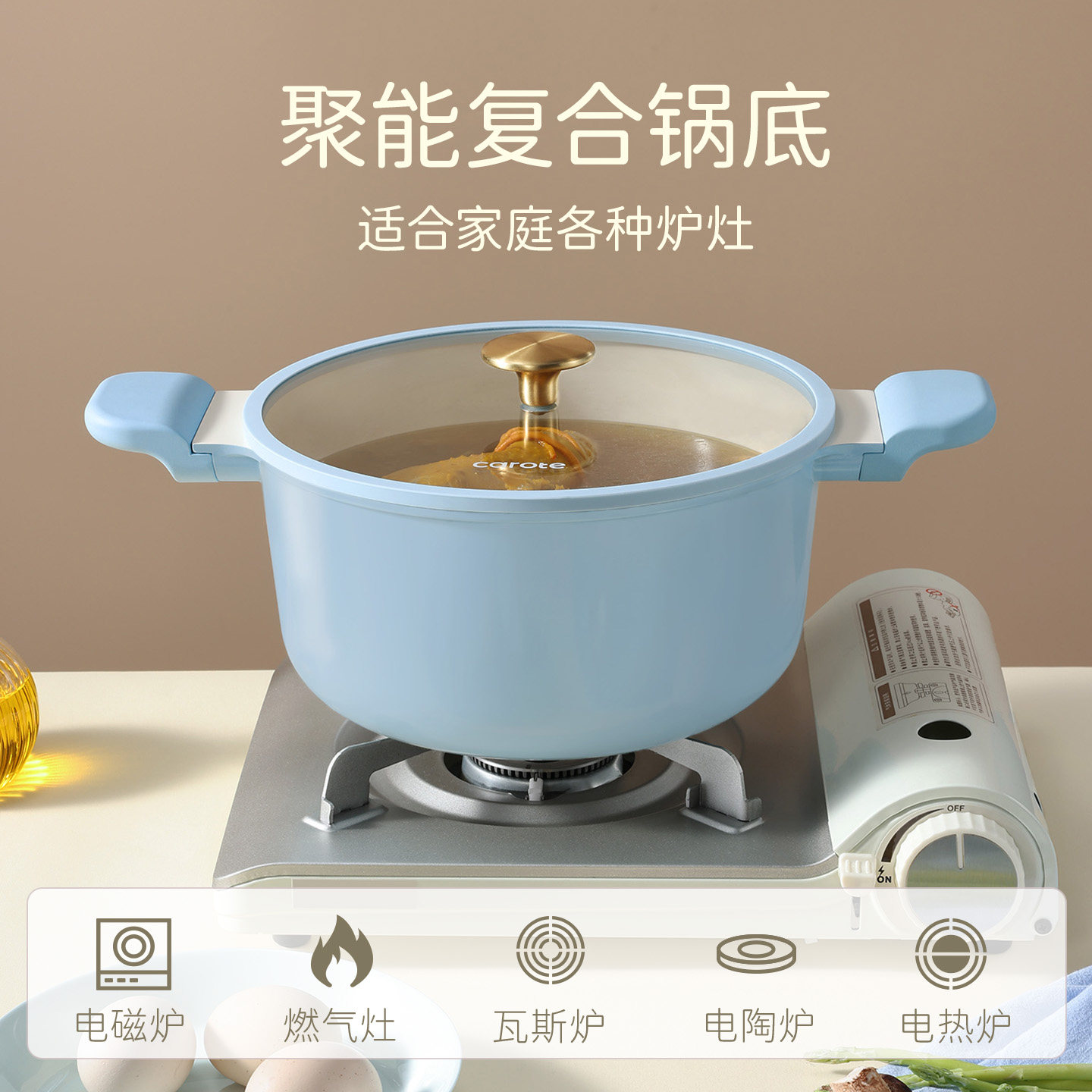 卡罗特汤锅煮锅炖锅蒸锅家用双耳煲汤锅电磁炉燃气灶钛陶瓷不粘锅