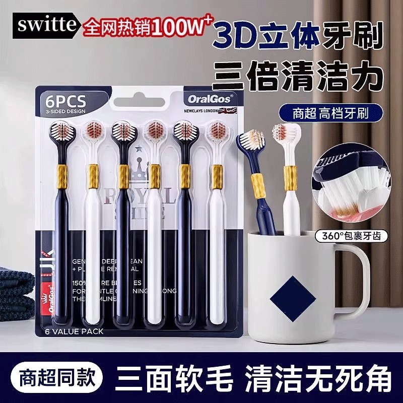 商超同款三面牙刷软毛成人男女士专用超软细排行榜第一名正品牌