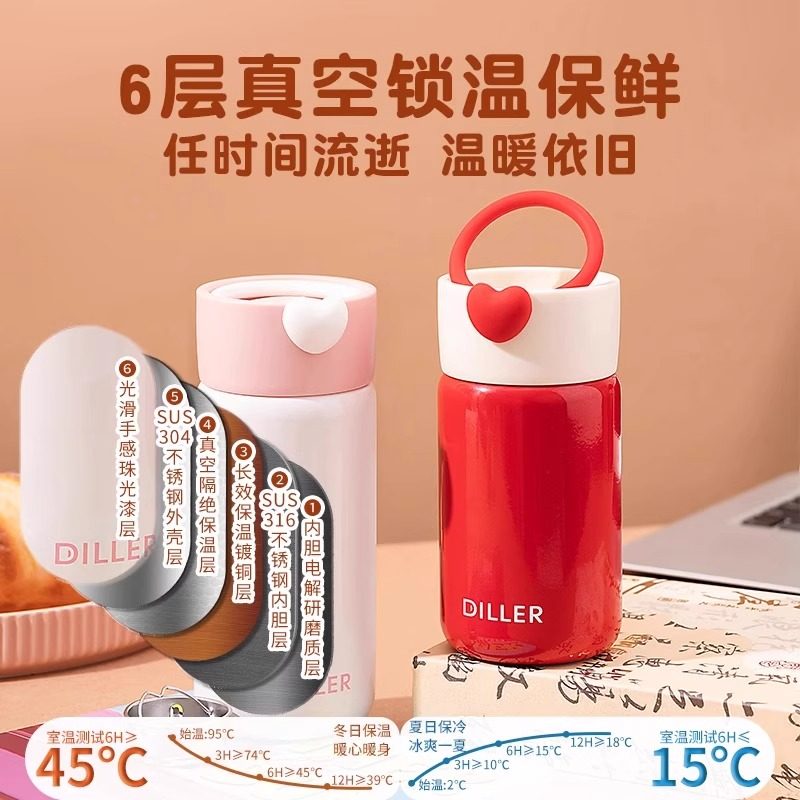 bablov保温杯女生小巧便携2025新款高颜值水杯成人带杯盖情侣杯子