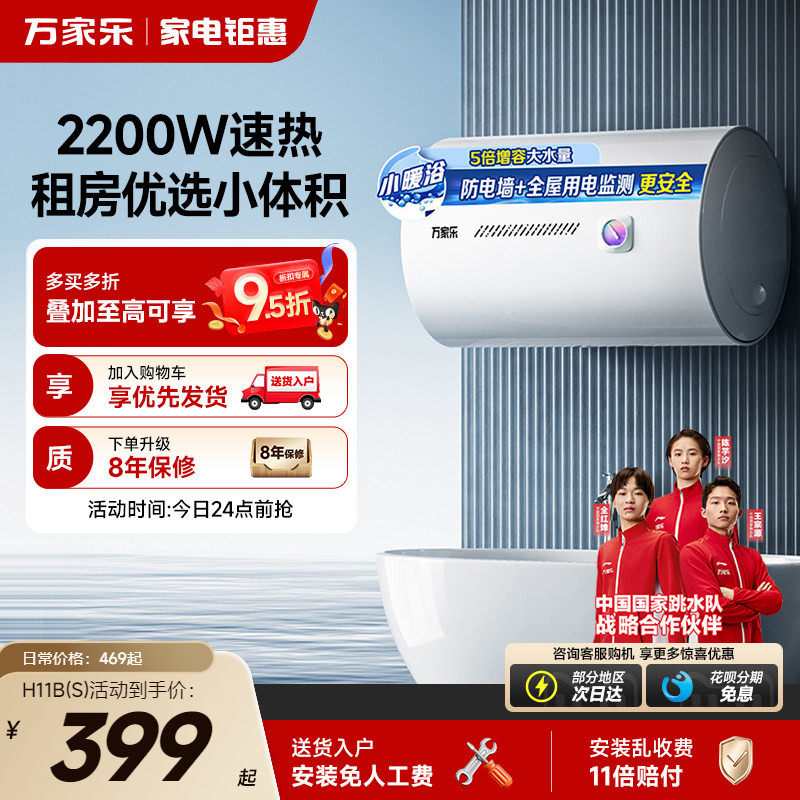 [政府补贴]万家乐电热水器家用洗澡卫生间40升速热租房50升小暖浴