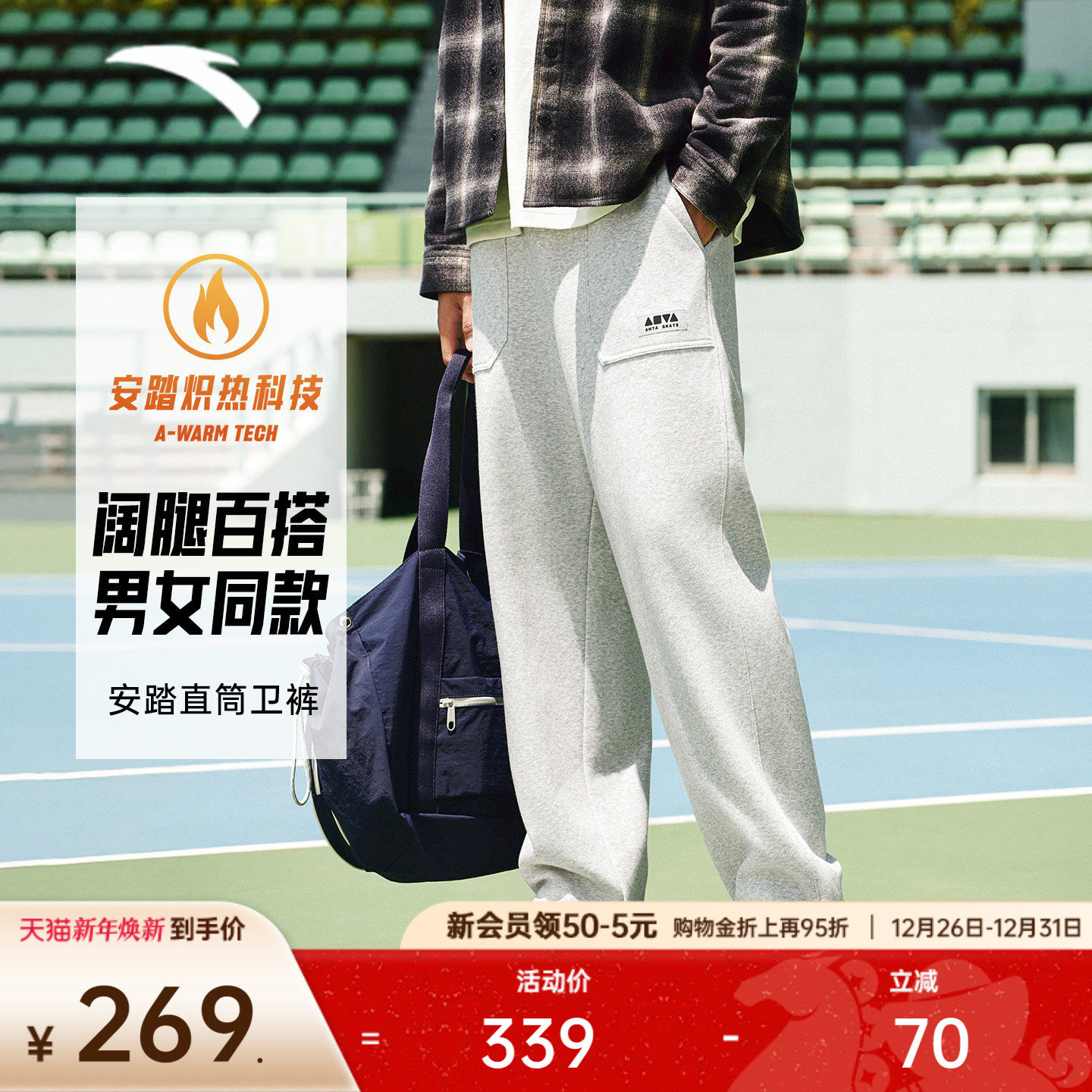 安踏休闲长裤男女冬季新款加绒保暖宽松阔腿裤百搭卫裤172548301N