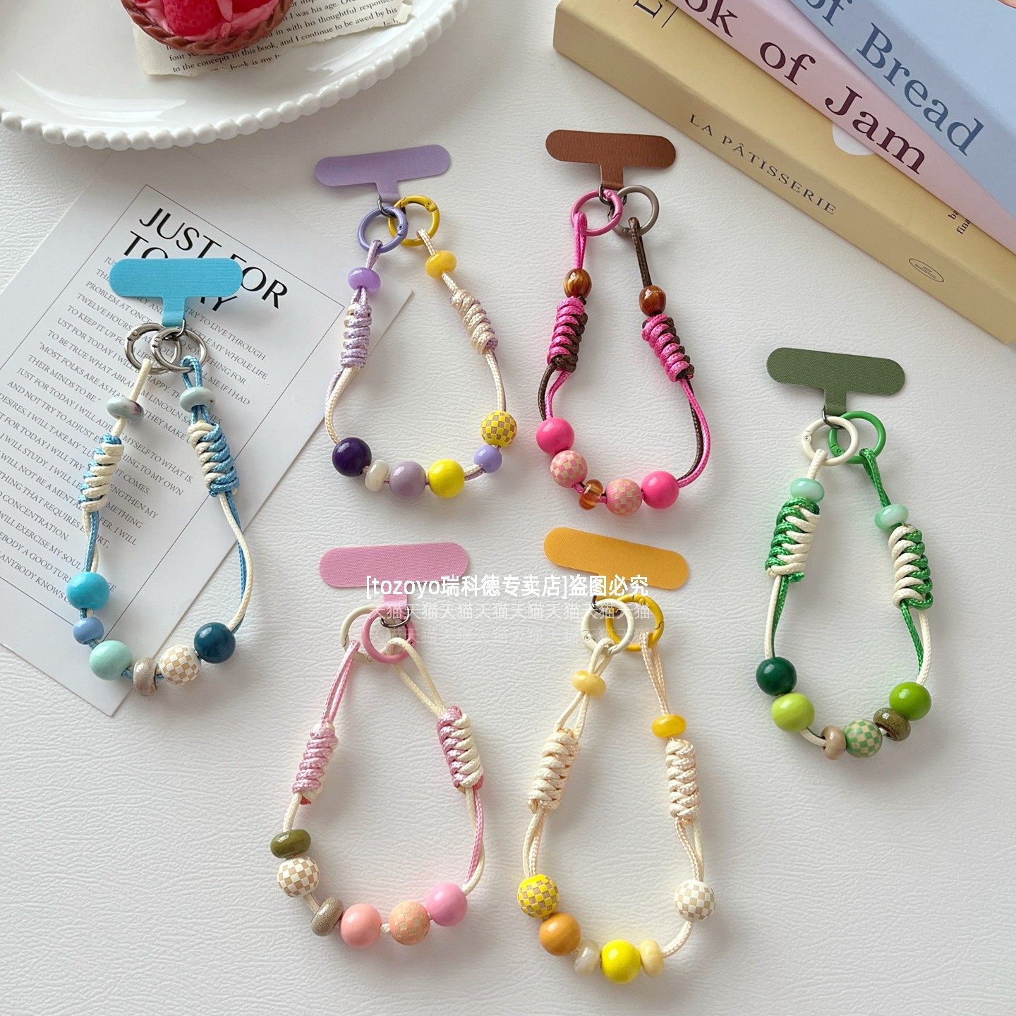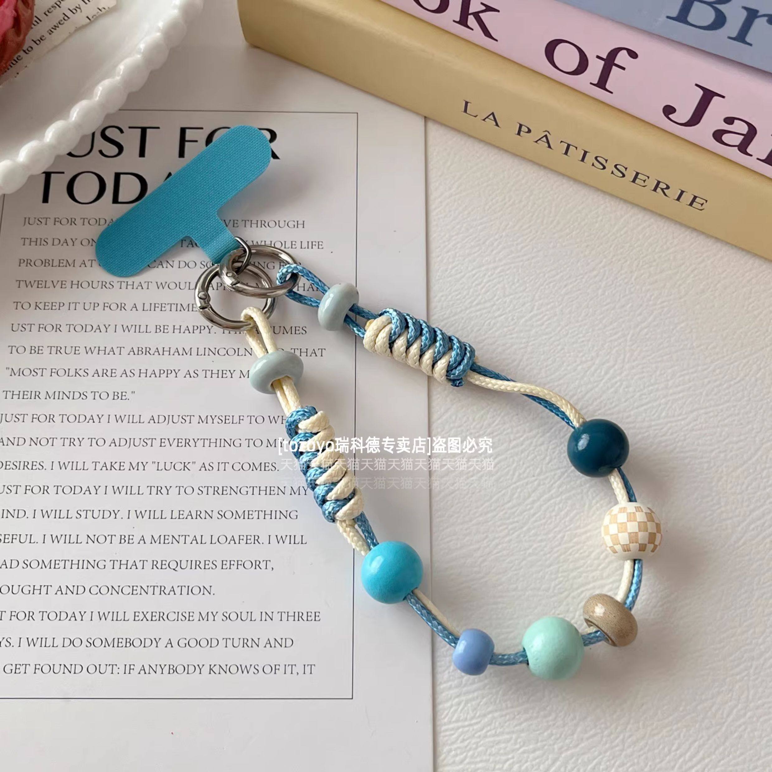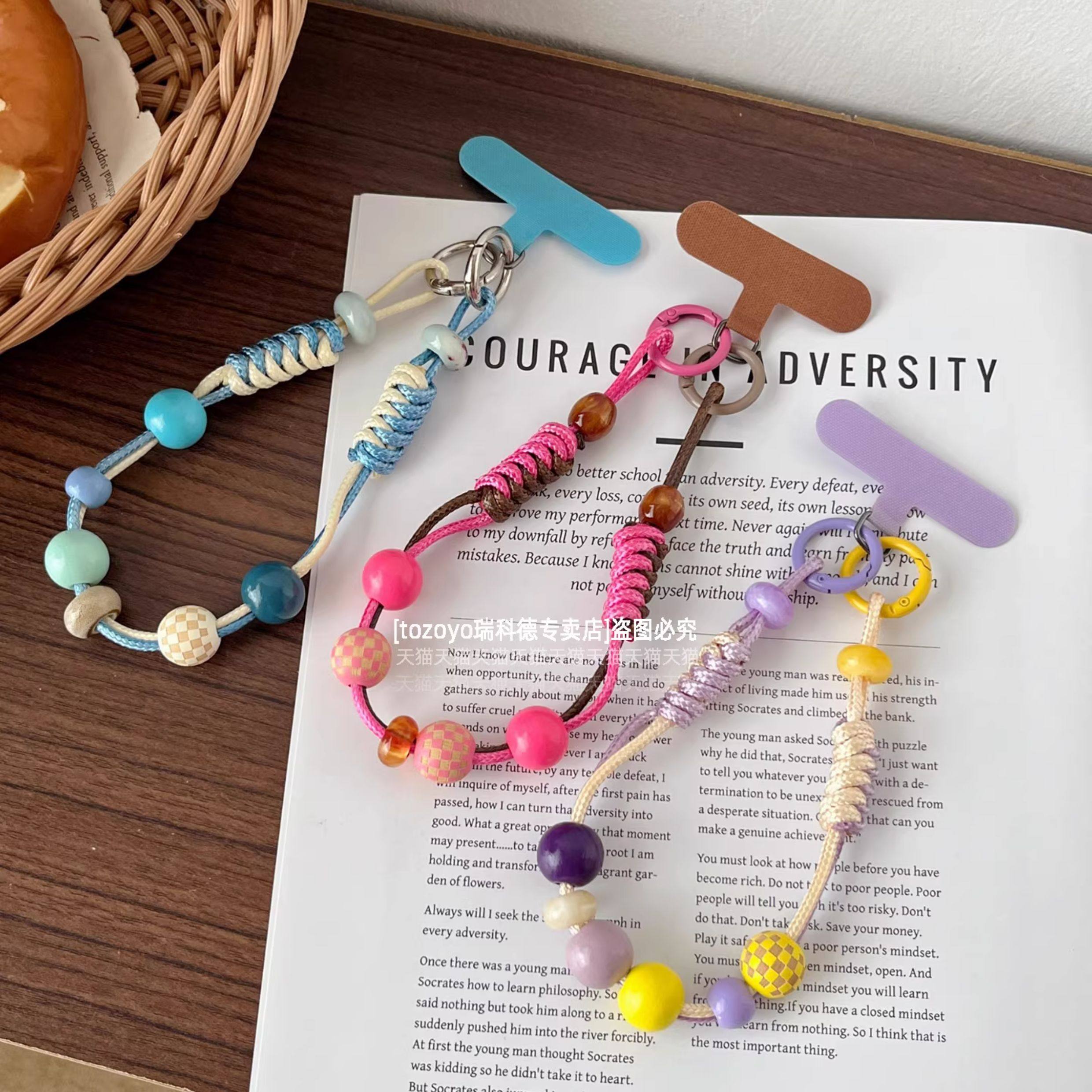 ins手机链挂绳手工编织蜡线皮绳糖果色木质串珠链条短款手腕手绳精致高端超好看挂链腕带包包钥匙相机结实壳