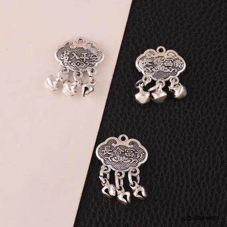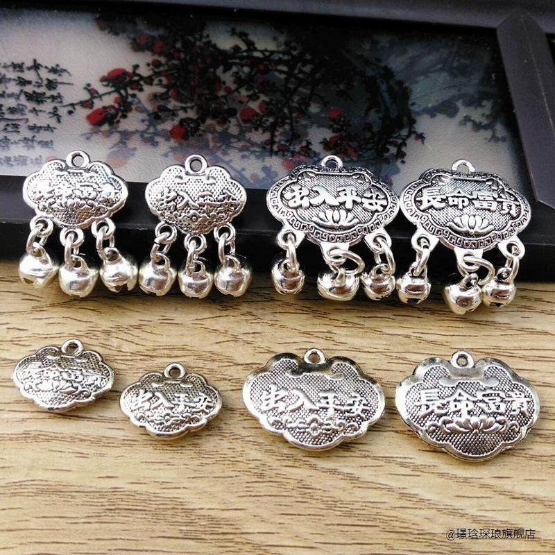 新款镀仿银迷你出入平安批发亮仿银色福锁编绳金锁福字长命锁脚链