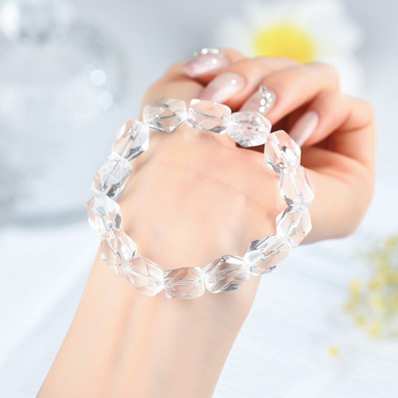 VZZS天然白水晶不规则随行单圈手链清新时尚经典手串饰品