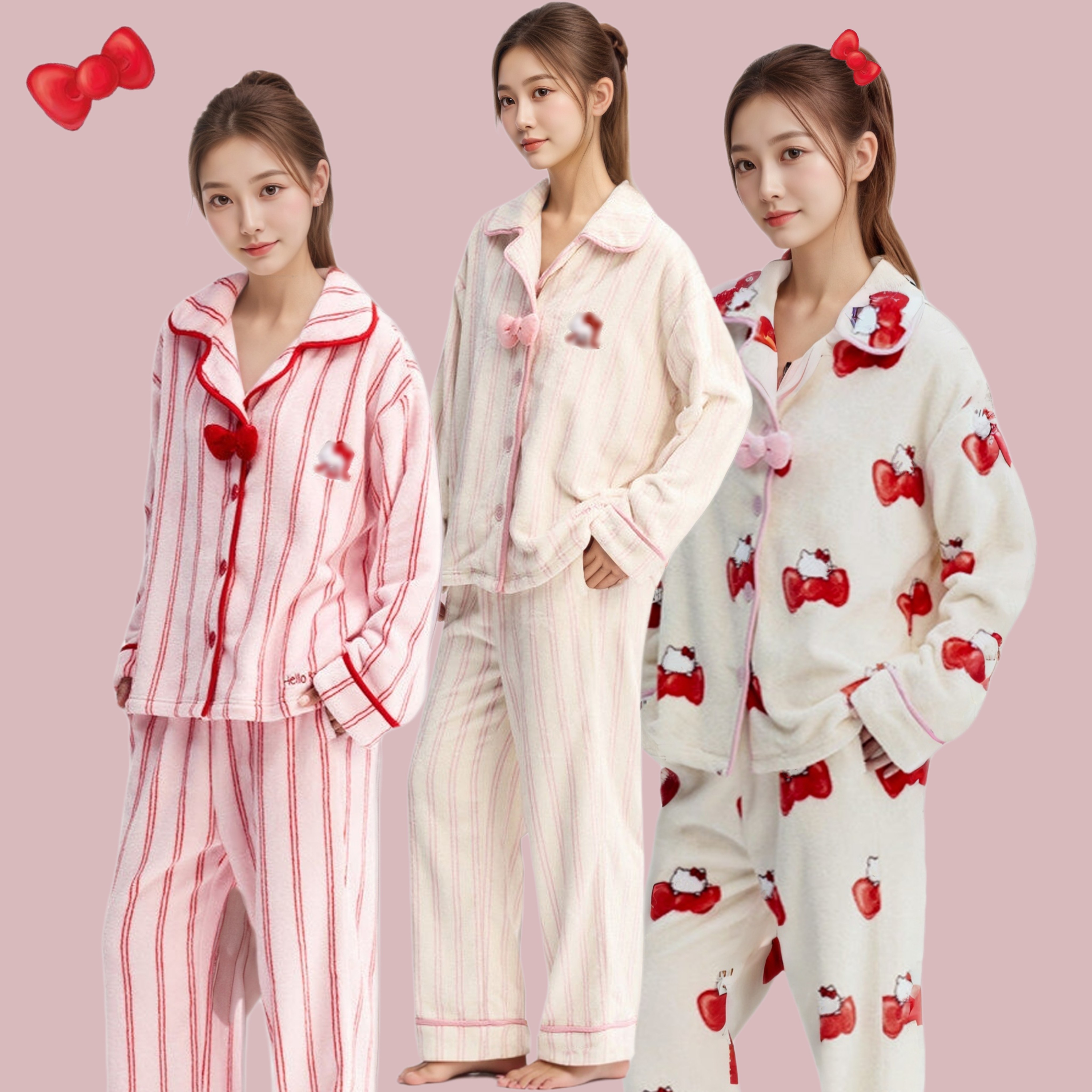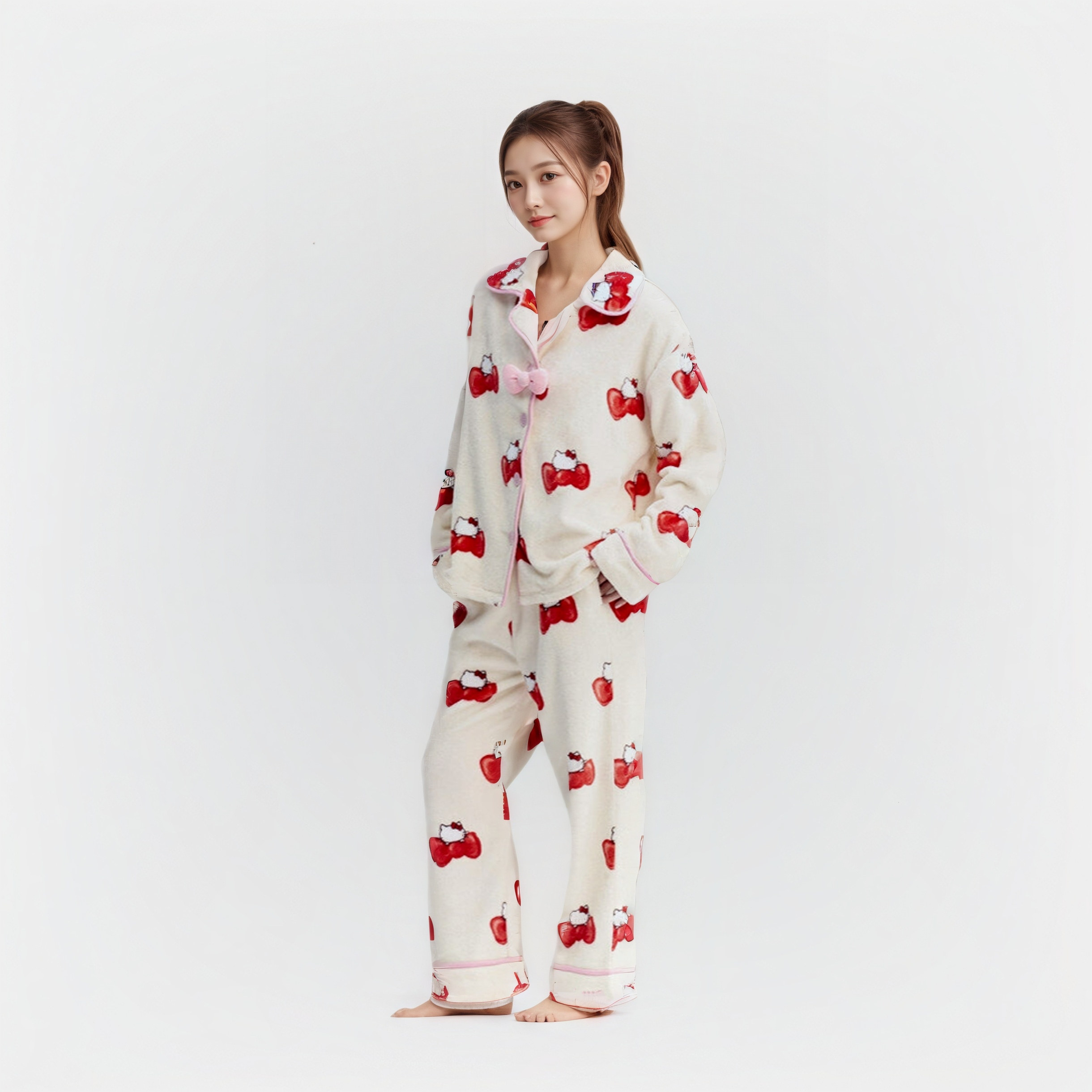 不入后悔!野家kitty法兰绒睡衣套装可爱冬季家居服珊瑚绒套装